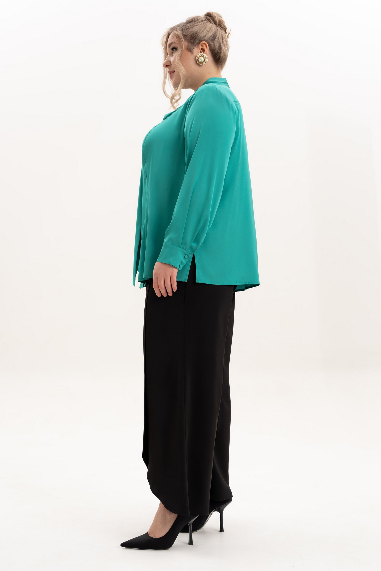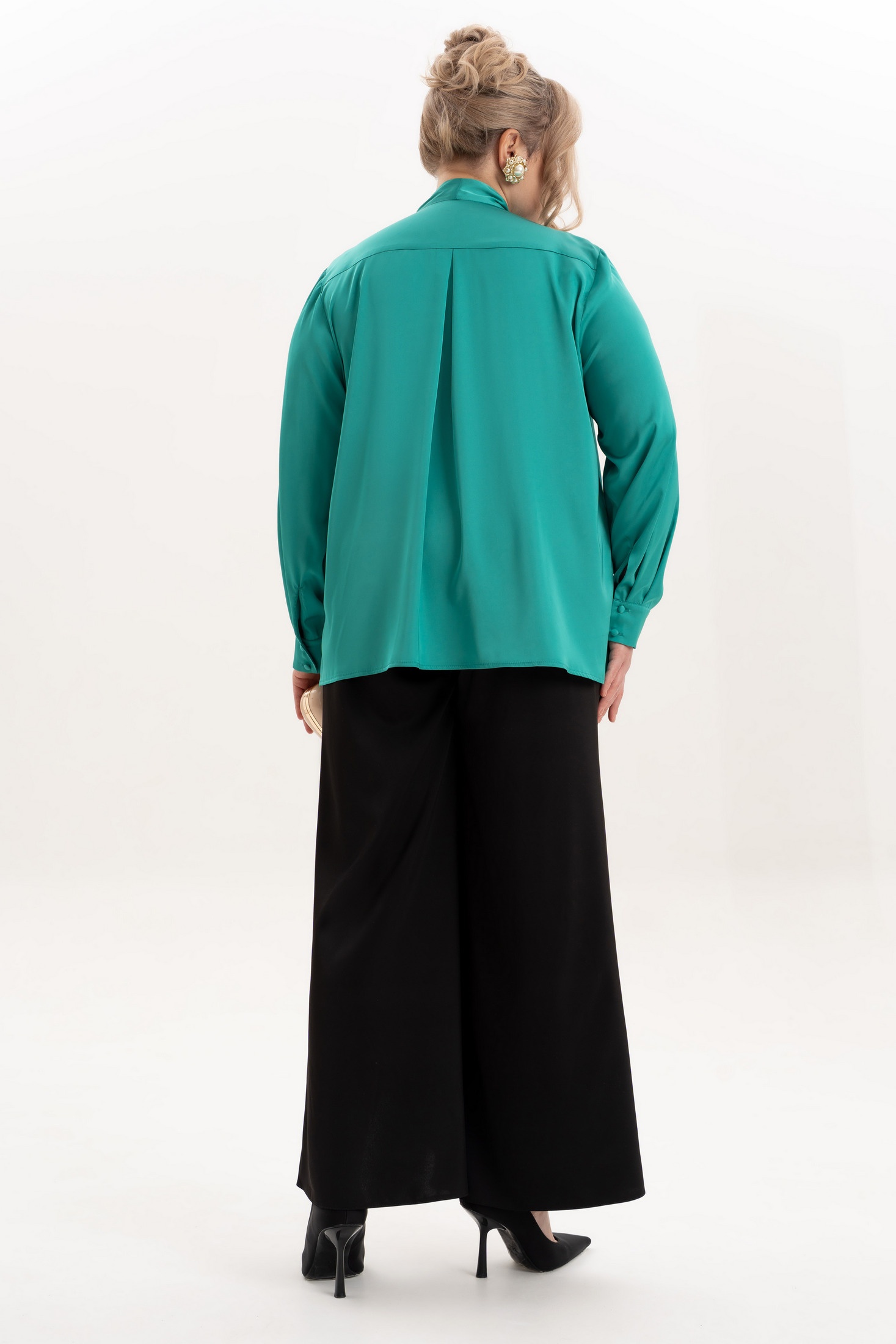 Прекрасная классическая блуза с воротником - бантом имеет прямой крой, поэтому отлично подходит для любого типа фигуры. Спинка со средним швом. По переду блузы есть рельефы от плечевого шва, в боковых швах - небольшие разрезы. Блуза изготовлена из приятной к телу ткани, гладкая фактура не мнётся и сохраняет свой первоначальный вид даже после многократных стирок. Рукав втачной, одношовный, длинный с манжетой на две петли и пуговицы. Комфортная модель для работы и просто для повседневного применения, так и к композиции нарядного ансамбля. Элегантная блуза с бантом - утончённая универсальность. Она гармонично дополнит Ваш гардероб, став незаменимым элементом на все случаи жизни. Гладкая фактура материала и длинные рукава добавляют элегантности и изысканности. Благодаря своему универсальному назначению, эта блуза подходит как для офисного стиля, так и для повседневного ношения, и в том числе на выход. Её однотонная структура и бескарманная конструкция делают блузу идеальным выбором для тех, кто ценит простоту и стиль.