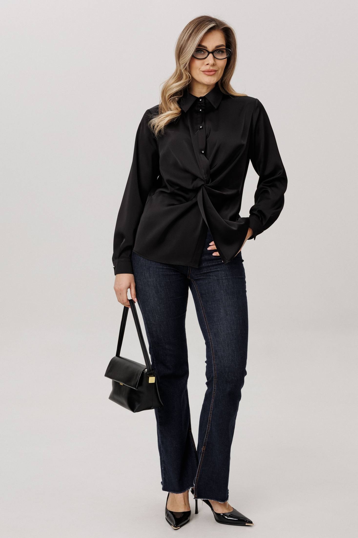 Эта блуза от Анелли - настоящее искусство, воплощенное в нежной, струящейся ткани, которая ласкает кожу шелковистым сиянием. Настоящая магия начинается прямо над линией талии, где рождается виртуозная драпировка. Ткань, послушная и пластичная, изящно перекручивается, формируя мягкий, объемный узел из живописных складок. Этот элемент не просто украшение - это скульптурный акцент, который притягивает взгляды, подчеркивает талию и придает всему силуэту уникальный, динамичный характер. Детали довершают образ безупречного качества: строгий отложной воротник на стойке, длинные рукава, заканчивающиеся элегантными манжетами на пуговицу, и аккуратная застежка на петли и пуговицы на притачной планке. Идеальное сочетание блузы вместе с кружевным топом 1664. Блуза в цвете «айс американо» создана для того, чтобы даже самый обычный день наполнился ощущением особенного стиля и утонченной женственности.