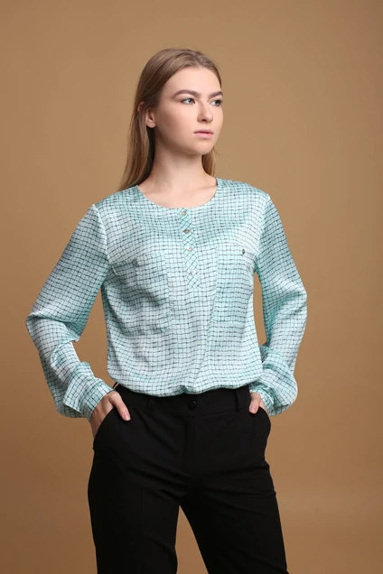 Блузка 057 бирюза + клетка AnnLine