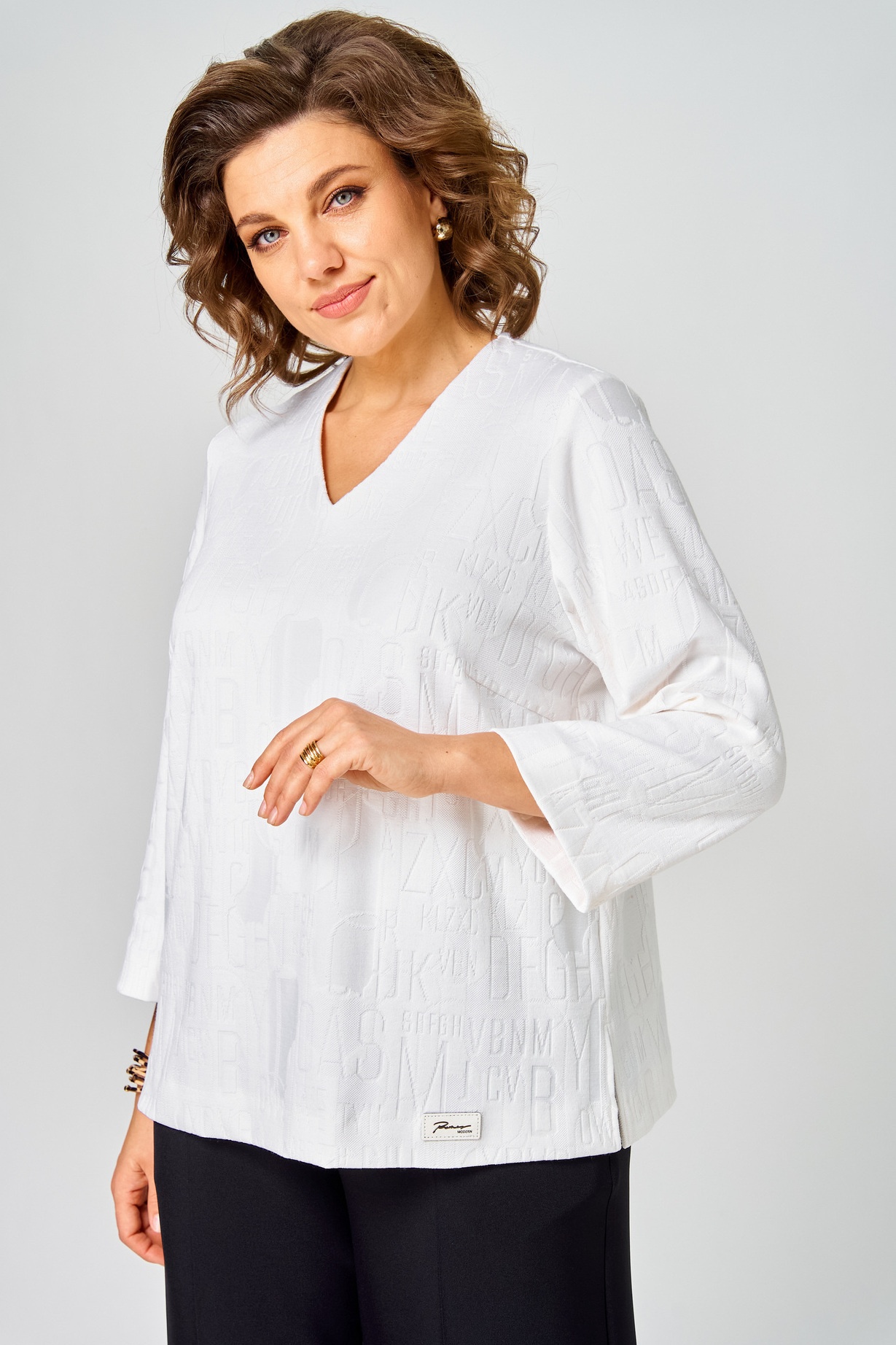 Идеальная блуза для создания базового гардероба, ткань премиальный трикотаж, прямой крой скроет недостатки фигуры и обеспечит комфорт на весь день. Рукав 3/4, спинка цельная,материал приятен к телу, вырез V-образный.Цвет универсальный,комбинируется с любой другой вещью в вашем гардеробе. Длина по спинке 65 см, длина рукава 53 см.