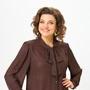 Элегантная трикотажная блузка черного цвета - идеальный выбор для повседневного гардероба. Длина изделия составляет 63 см. Блузка отличается длинными объемными рукавами и круглым вырезом. В качестве декора на одном плече используется красивый цветочный элемент из ткани и металла, добавляющий изысканности образу. Струящийся драпаж дополняет скромный, но выразительный силуэт этой модели.