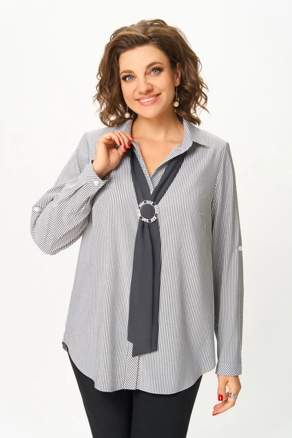 Элегантная блузка в тонкий серый полосатый принт представляет собой стильное дополнение к вашему гардеробу. Изделие имеет классическую длину 77 см и длину рукава 63 см, обеспечивая комфортное прилегание. Дизайн дополняет изящный воротник-стойка, придающий строгость образу, и мягкая элегантная планка с пуговицами. Блузка идеально подойдет как для офиса, так и для более неформальных мероприятий.