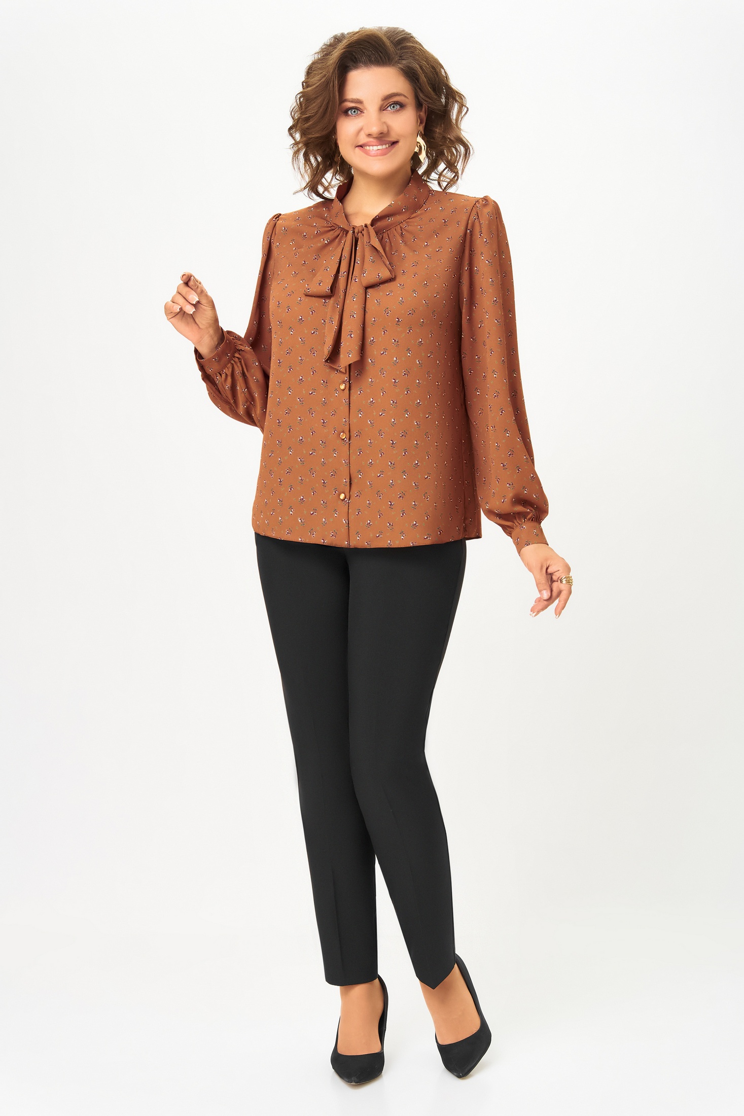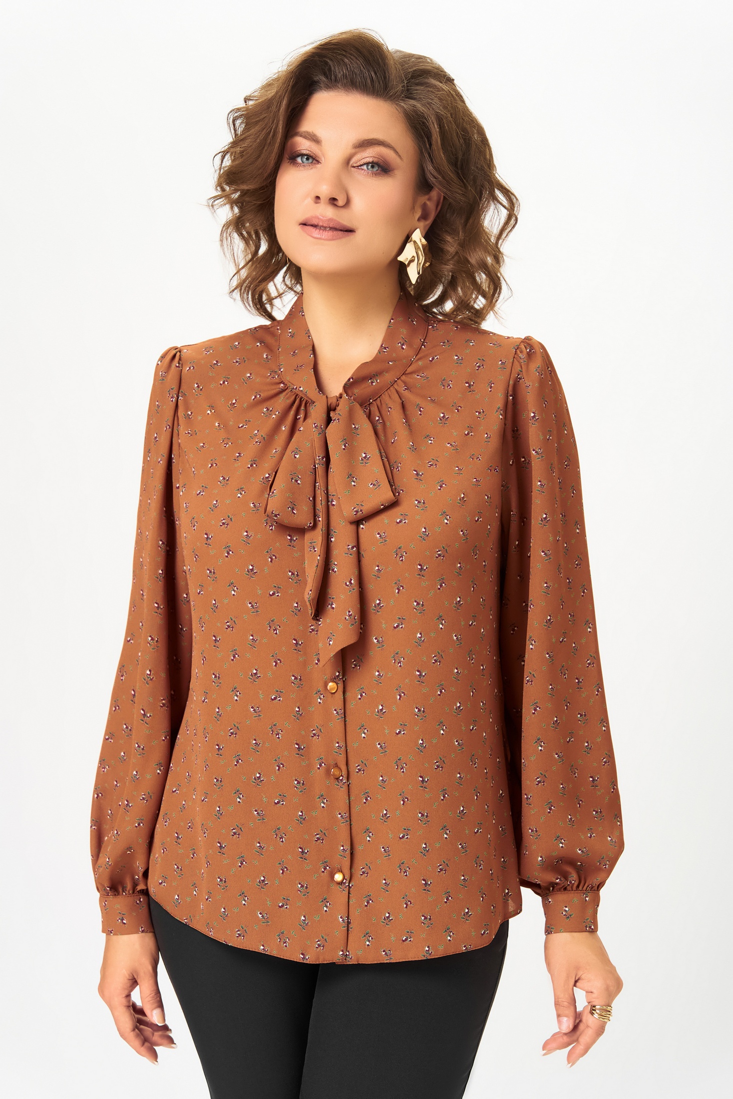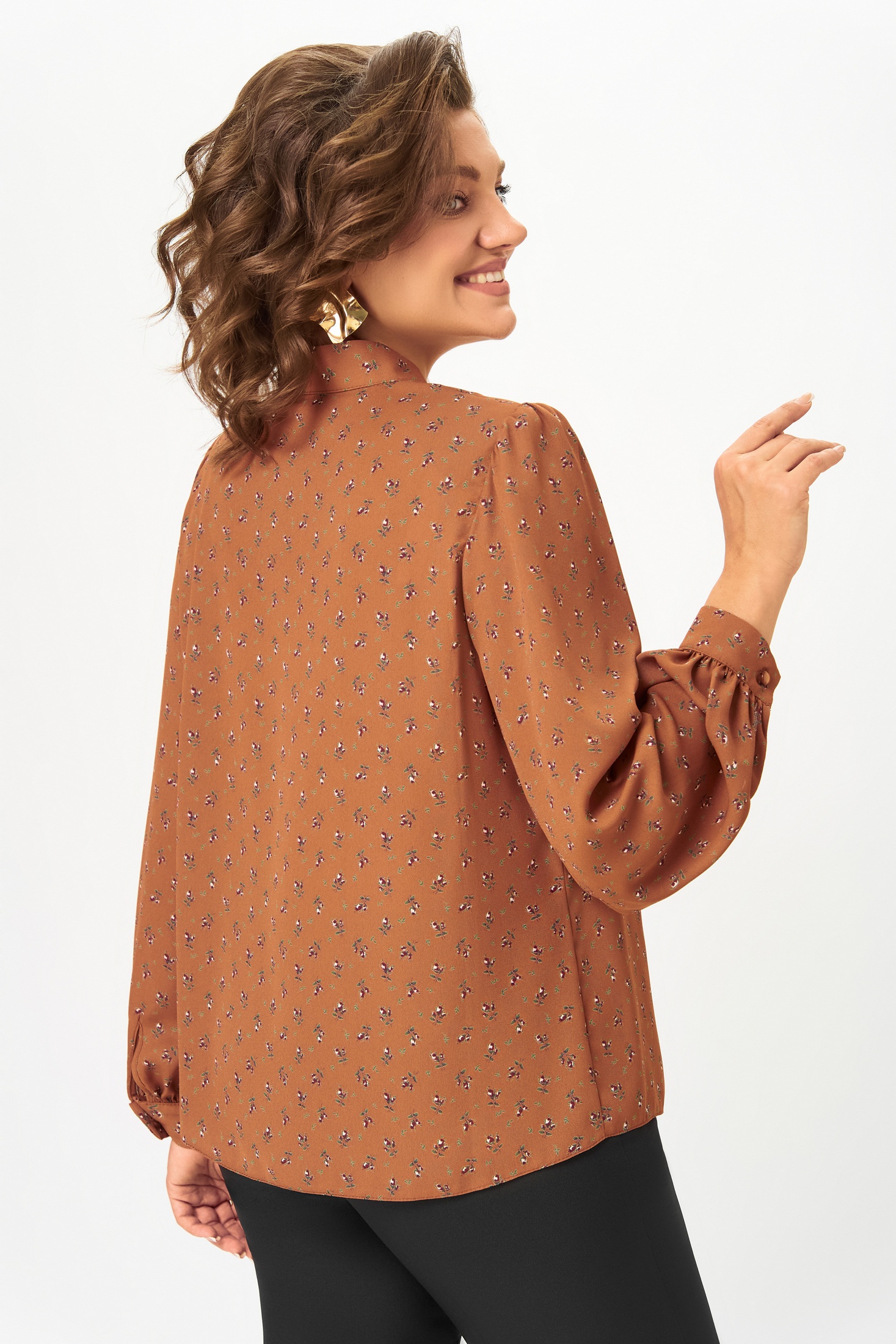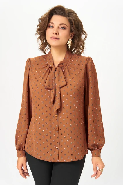 Элегантная блузка отличается глубоким горчичным оттенком, дополненным утонченным микро-принтом в виде маленьких фигурок. Модель с длиной изделия 66 см и длиной рукава 64 см обеспечивает комфортное покрытие. Дизайн блузки дополняет изящный галстук-бант на воротнике, придавая образу нотку романтичности и женственности. Мягкие манжеты на рукавах добавляют аккуратный акцент. Эта блузка станет идеальным выбором для создания как делового, так и повседневного образа.