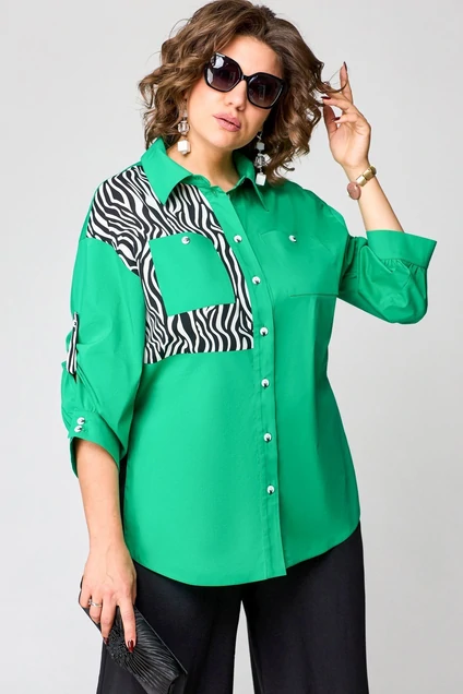 Блузка 7080-1 зелень + принт зебра EVA GRANT