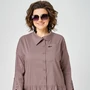 Блуза женская нарядно-повседневная прямого силуэта, выполнена из хлопка в сочетании с отделкой с анималистичным принтом. Вырез горловины воротник на стойке рубашечного типа. Застежка доверхуна обметанные петли и отделочные пуговицы, плечо спущенное, рукав втачной на манжете по низу собран на сборку. По полачкам накладные карманы с отделочными пуговицами. В боковх швах обрабоаны разрезы, низ блузы фигурный. Декором служит вставка из отделочной ткани по правой полочке и пата по рукаву при помощи которой можно регулировать длину рукава.