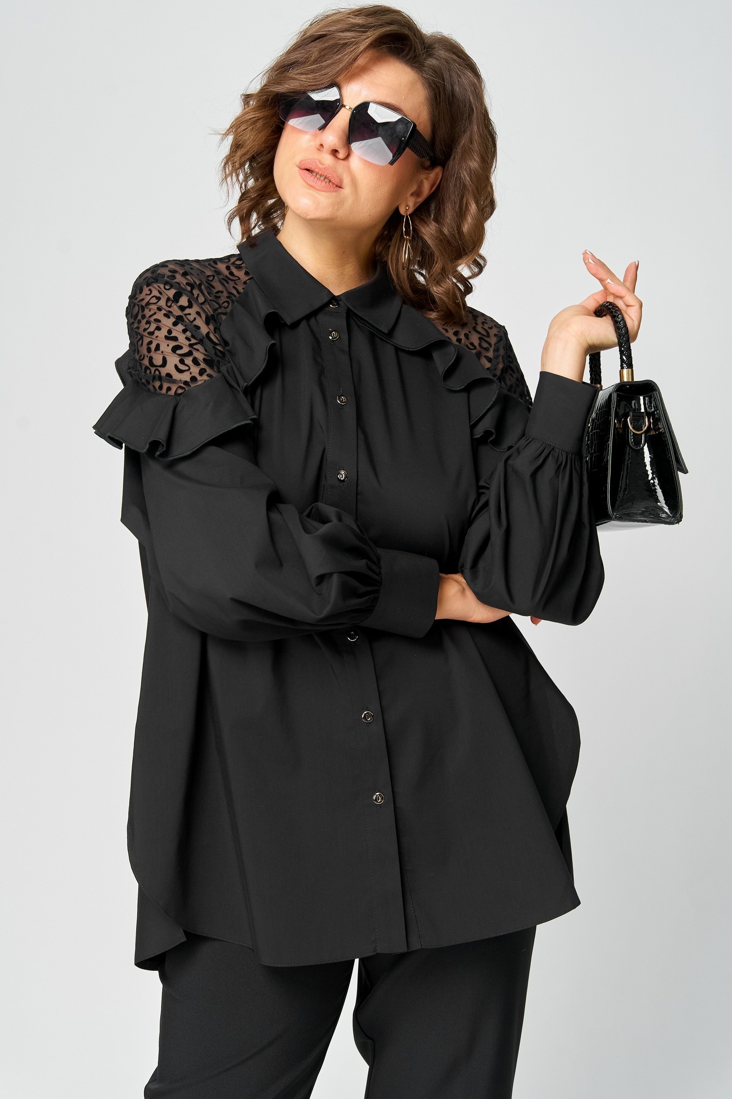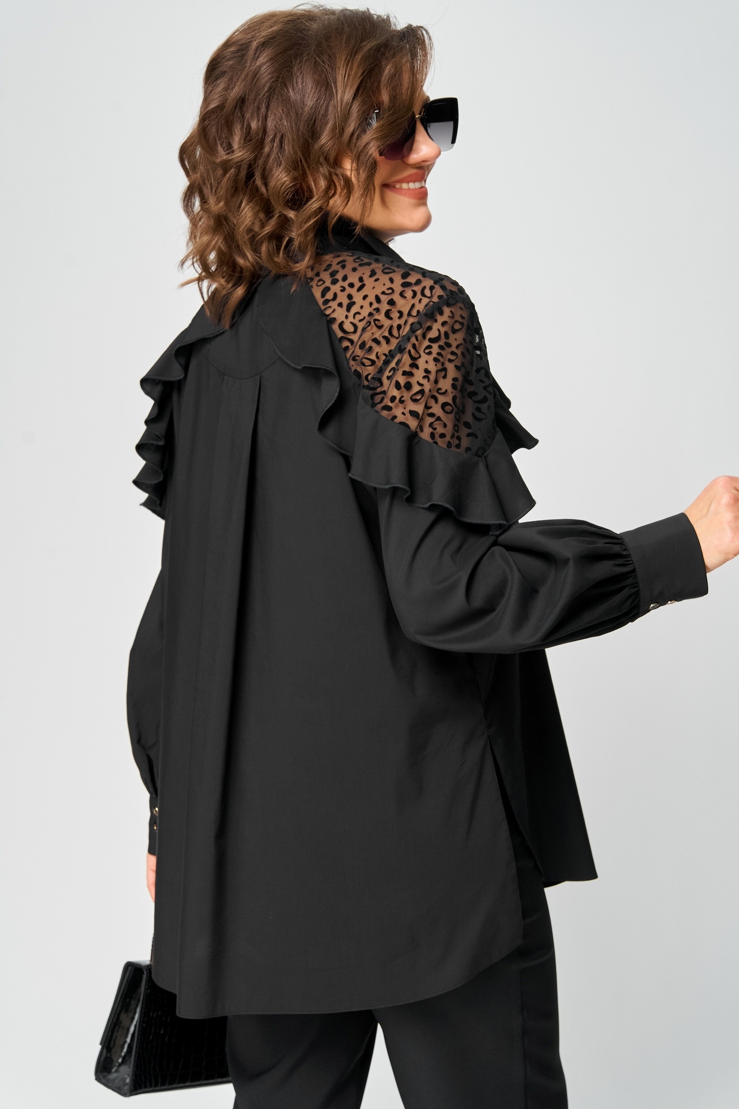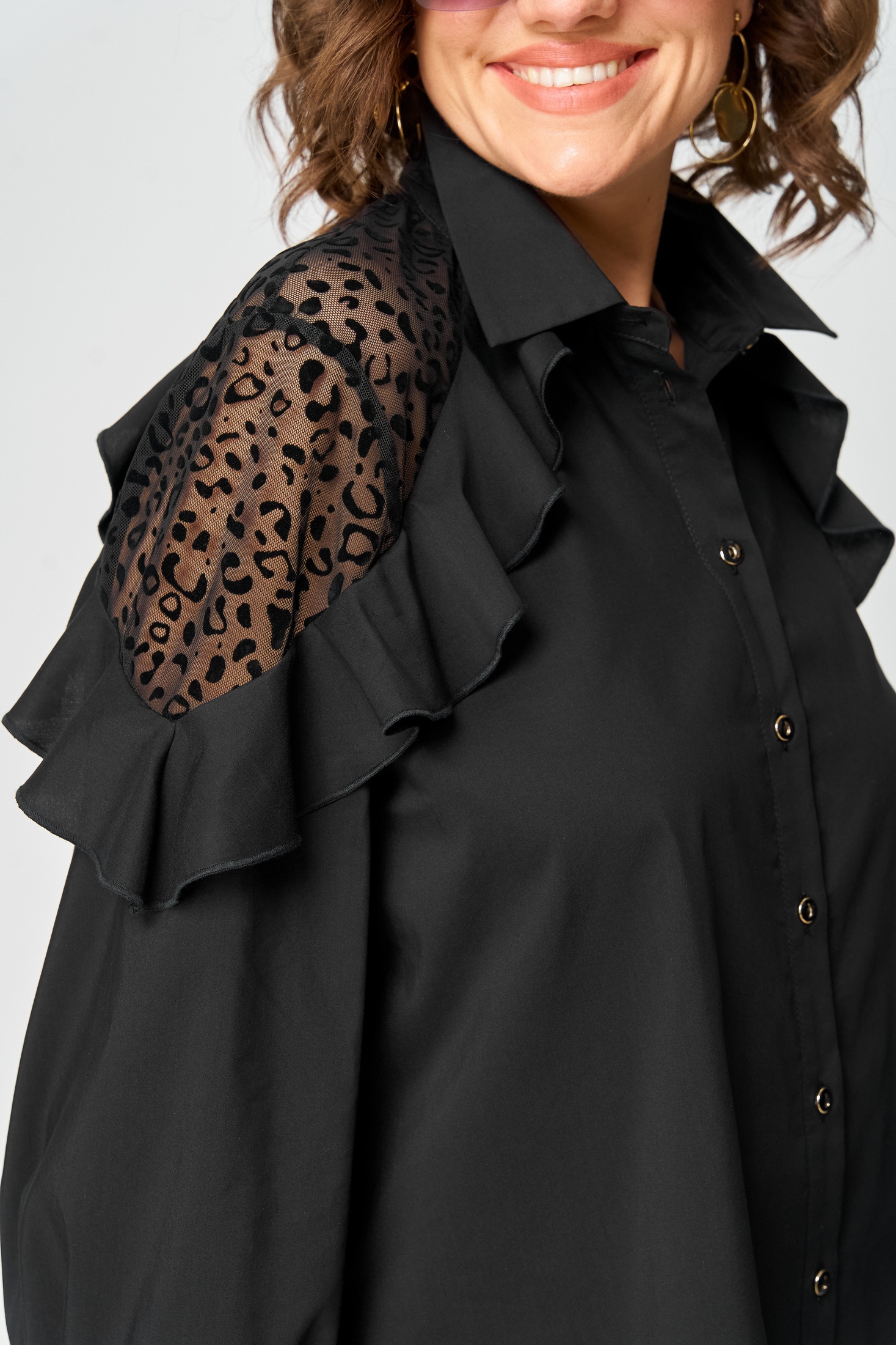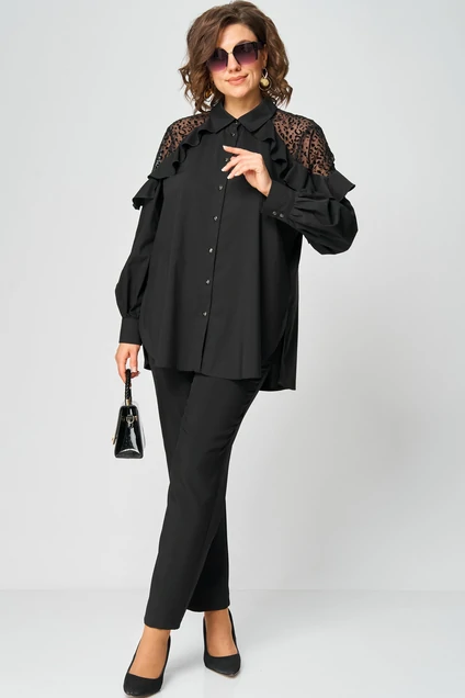 Блузка женская шикарная красивая нарядно-повседневная свободного силута выполнена их хлопка в сочетании с элегантным кружевом. Вырез горловины воротник на стойке рубашечного типа, рукав втачной с декоративным подрезом из кружева по низу на притачной манжете. Застежка до верху на обметанные петли и пуговицы. Низ блузы фигурный, в боковых швах обработан разрезы.