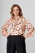 Горловина блузки со стойкой, которая переходит в шикарный завязывающийся бант.