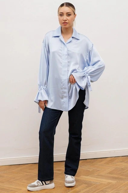 Блузка женская из атласа - идеальный выбор для создания элегантного и стильного образа. Свободный длинный рукав, манжета с декоративной лентой, превращающейся в красивый бант, рубашечный воротник и свободный крой переда и спинки делают эту блузку универсальной и практичной. Отличный элемент гардероба, независящий от поры года, который лополнит ваш образ на каждый день или поможет завершить нарядный образ.