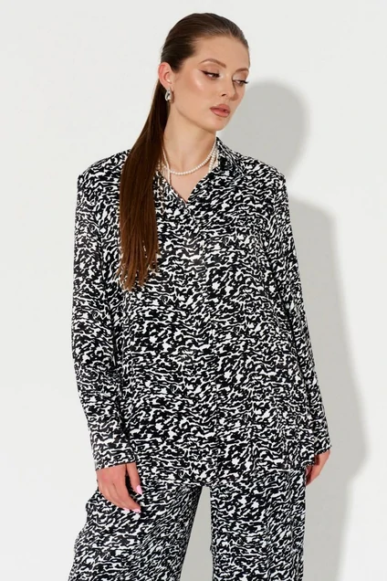 Блузка женская из вискозной ткани для повседневной носки прямого силуэта. Блузка имеет центральную ботовую застежку на петли пуговицы. Горловина обработана рубашечным воротником с отрезной стойкой. Рукава длинные, низ рукава обработан притачной манжетой с застежкой на петли пуговицы. Очень стильная и модная блузка, которая будет гармонично смотреться на вашей фигуре.