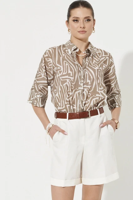 Блузка женская из хлопчатобумажной ткани прямого силуэта для повседневной носки. В блузке имеется центральная бортовая застежка на девять обметанных петель и девять пуговиц. В боковых швах имеются небольшие разрезы. Горловина обработана рубашечным воротником с отрезной стойкой. Блузка с втачным рукавом длиной чуть ниже локтя, низ рукава обработан притачной манжетой. Очень легкая и воздушная блузка подарит вашему телу комфорт, а также будет отлично смотреться на вашей фигуре.