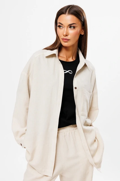 Рубашка лен свободного кроя со спущенными рукавами и накладным карманом. Прекрасно сочетается с шортами модели 4074 и брюками модели 4076. Ткань лен. Рост 170
