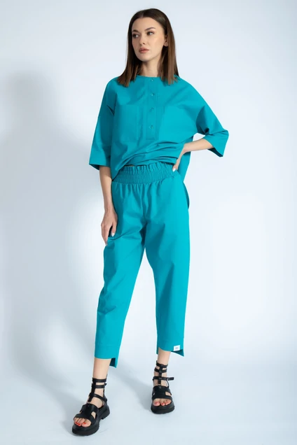 Рубашка лен свободного кроя со спущенными рукавами и накладными карманами, застежкой поло. Удлиненная по спинке, с разрезами в боковых швах. Прекрасно сочетается с шортами модели 4074, брюками модели 4076, джоггерами модели 4082. Ткань лен. Рост 170