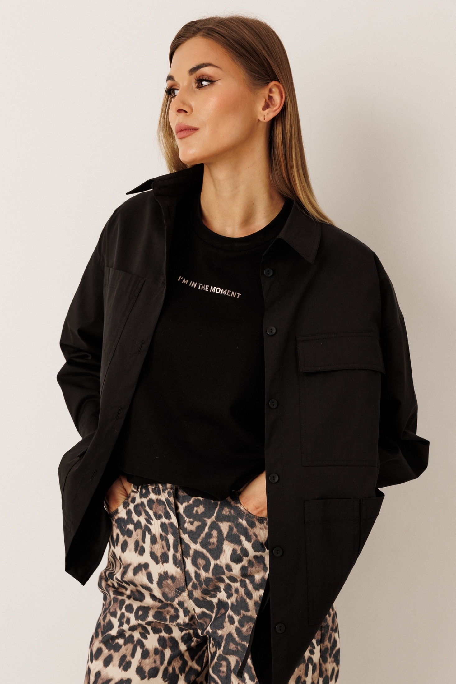 – по бокам — кулиса: шнурки можно затянуть и завязать, создавая новый силуэт рубашки