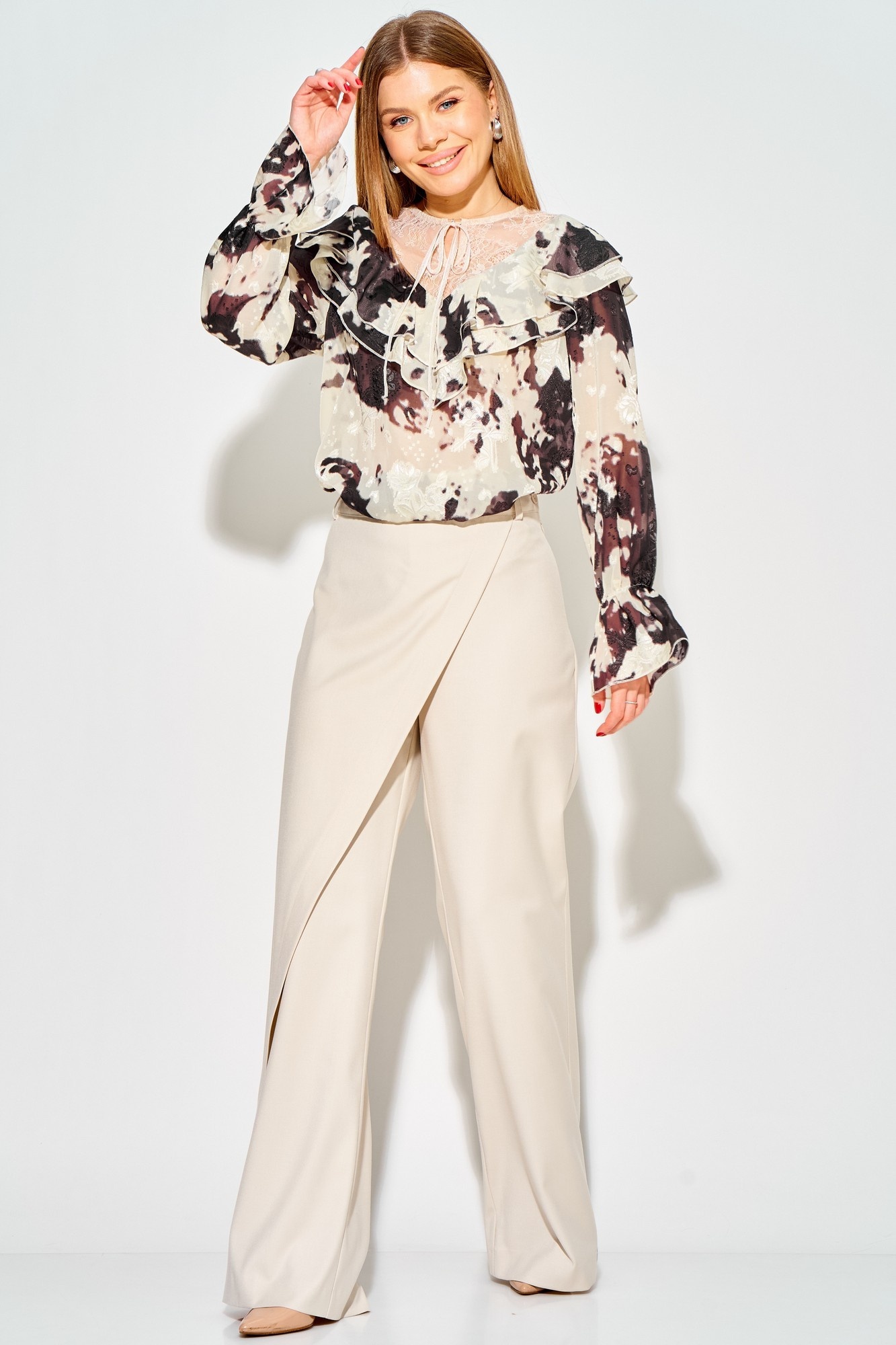 Наша блуза составит нарядный образ с брюками L-942-2 (на фоото) - и вы будете блистать на любом торжественном мероприятии.