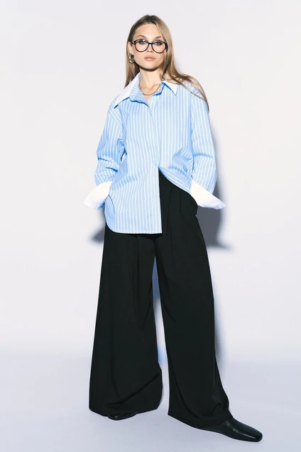 Рубашка из двух видов ткани .прямой силуэт,потайная планка .Сзади по центальному шву разрез. Размеры S(42-46) M(48-52).
