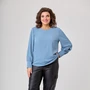 Блуза выполнена из блузочной ткани свободного кроя с цельнокроеным рукавом с отворотом, который подхвачен патой на пуговицу. По линии талии настрочена кулиска, в которую втянут шнур. Блуза имеет рубашечный воротник, застежка на пуговицы и на груди 2 больших накладных кармана. Низ блузы по центру спинки и переда слегка удлинен. Длина блузы по центру спинки 81 см. Длина рукава от горловины 66 см.