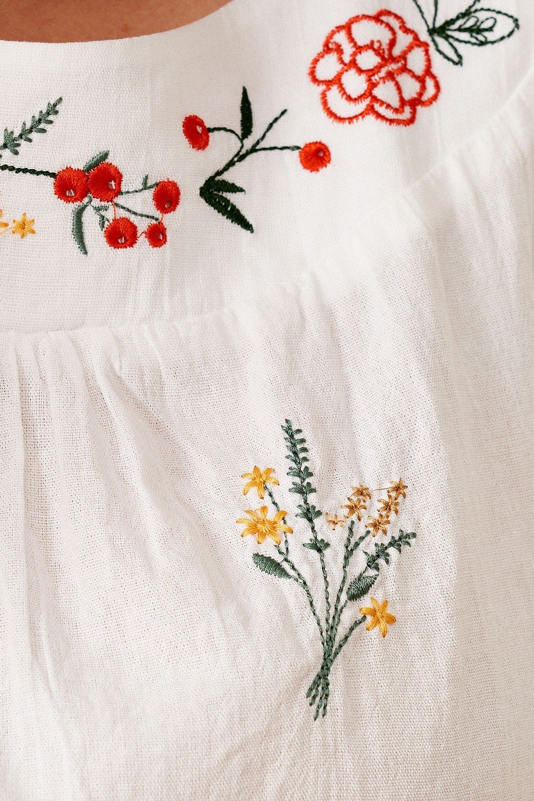 Блузка прямого силуэта, из хлопковой ткани. Блузка с круглым вырезом горловины и широкой планкой на которой расположена, авторская вышивка, в блузке боковые швы перехоят на деталь переда и заканчиваются разрезами, с не большим перепадом длины, перед короче, спинка длиннее. Спинка на широкой обтачке. Рукава полуреглан, расширенные, линия низа на резинке, длина 3/4. Блузка- это тренд на все время, она относится к базовой части гардероба. С помощю блузки можно создавать интересные образы на каждый день, можно носить, с джинсами, шортами, хлопковыми брюками.