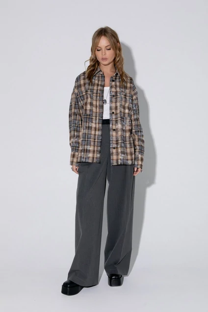 Свободная рубашка в клетку с эффектом потертости.