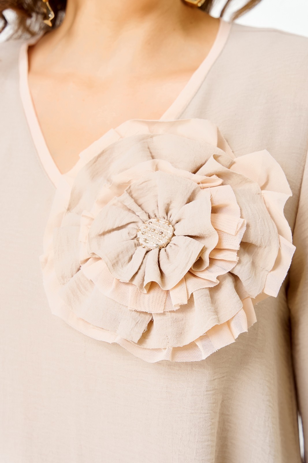 Блузка 3025 бежевый Svetlana Style представляет собой стильное решение от коллекции бренда Svetlana Style. Эта женская блузка A-силуэта выполнена из сочетания полиэстера и вискозы, что обеспечивает комфорт и свободу движений. Длина по спинке составляет 80 см, длина рукава 50 см, добавляет элегантности образу. V-образный вырез горловины и расширенные к низу рукава длиной 7/8 придают изделию особую утонченность. Украшение в виде съемного цветка добавляет романтичности. Бежевый оттенок и отделка позволяют легко сочетать блузку с различными элементами гардероба, а также делают её идеальным выбором для весны и осени. Эта модель подойдет как для офисных встреч, так и для вечерних мероприятий.