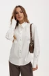 Блузка прямого силуэта. Застежка на петли и пуговицы. Воротник рубашечный. Рукав прямой со складками понизу и манжетой фигурной формы. Застежка манжеты на петли и