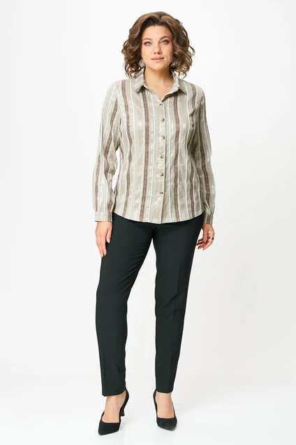 Комфортная женская блузка рубашечного типа из хлопкосодержащей ткани. Силуэт приталенный. Спереди вытачки. Рукав втачной длинный заканчивается манжетой с разрезом и застежкой на пуговицу. Полосатый винтажный дизайн придаёт рубашке праздничный вид. Модель блузки подходит на любой тип фигуры и на любой рост. Эта рубашка в полоску легко комбинируется с любыми вещами в гардеробе и подходит для различных мероприятий. Важно при выборе размера ориентироваться на личные замеры и соотнести их с таблицей обмерных данных в готовом виде, указанной в галереи фотографий. Именно так Вы подберете правильный размер и будете радоваться заказу. Чтобы перейти в общий каталог моделей, нажмите на иконку бренда в карточке товара. Каждое изделие нами проверено и аккуратно упаковано. Все изделия производятся в Республике Беларусь на собственной фабрике. Мы будем рады вашим отзывам и рекомендациям, благодаря им мы становимся лучше!