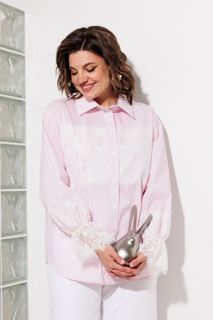 Блузка 1352 розовый + полоска ANASTASIA MAK