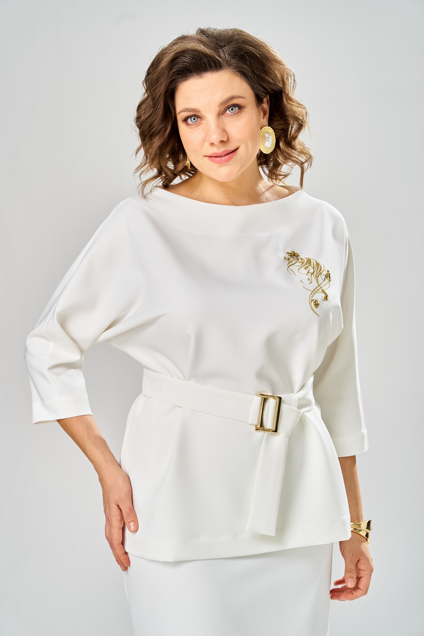 Блузка 5049-25 молок ANDINA CITY сочетает в себе утонченность и комфорт. Коллекция бренда ANDINA CITY предлагает блузку из смеси полиэстера и спандекса, представляющую высокую эластичность и мягкость. Прямой крой со съёмным поясом позволяет адаптировать силуэт под разные образы. Вышивка добавляет особую женственность, а рукава длиной ¾ обеспечивают комфорт в демисезонное время. Идеальная для офисного стиля и повседневного ношения, эта блузка станет настоящей находкой в вашем гардеробе. Нежный молочный цвет подчеркивает изысканность и подойдет для различных цветовых сочетаний.