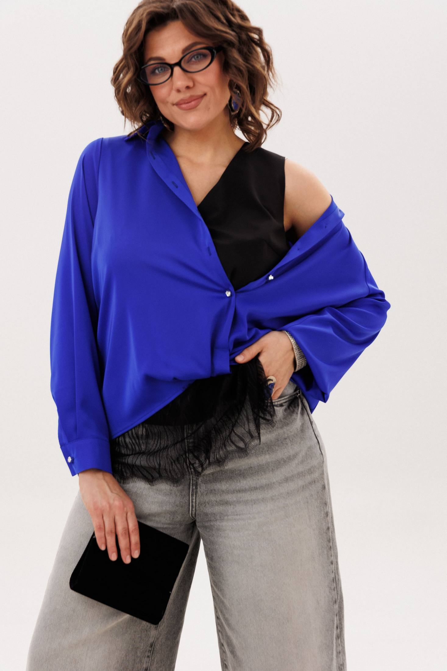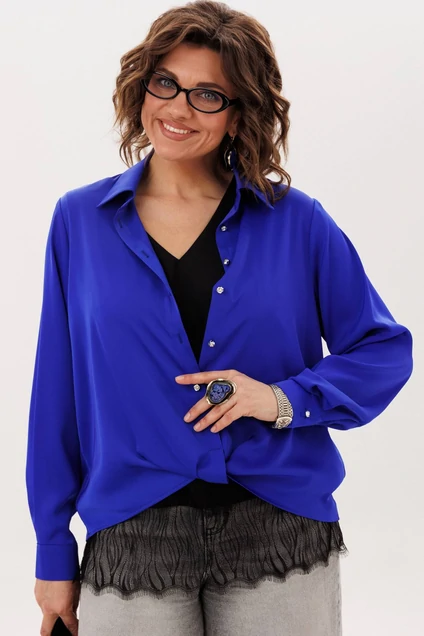 Блузка 1663 ослепительно синий Anelli — это элегантное изделие, которое станет ярким акцентом в вашем гардеробе. Коллекция бренда Anelli использует материалы, создающие комфорт и утонченность: вискоза, полиэстер и спандекс. Блуза отличается строгим отложным воротником на стойке и пуговицами, добавляющими изысканность. Длинные втачные рукава завершаются элегантными манжетами. Идеально подходит для демисезона, её насыщенный синий цвет привносит динамику в повседневные и офисные образы. Асимметричный низ и мягкий узел на передней части создают уникальный силуэт. Длина спинки составляет от 64 до 68 см в зависимости от размера, что обеспечивает комфортную посадку. Идеальна для сочетания с классическими брюками или джинсами на каждый день.