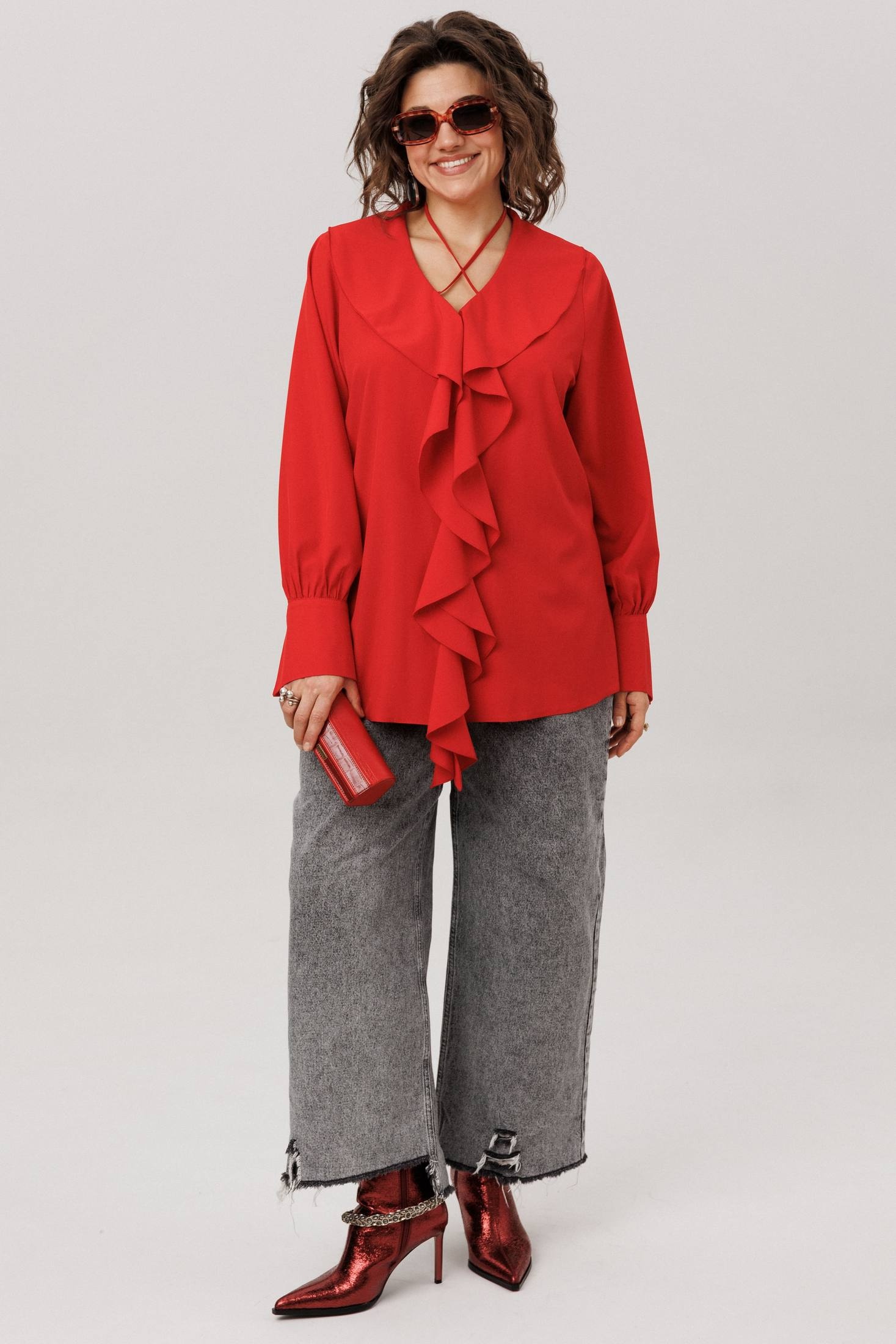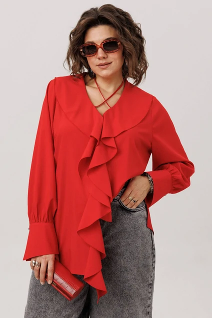 Блузка 1679 купидон Anelli — изысканное дополнение вашего гардероба. Коллекция бренда Anelli представляет лёгкую и воздушную блузу с V-образным вырезом, украшенным воланами, подчёркивающими её романтичную натуру. Изготовленная из мягкой вискозы и полиэстера, она обеспечивает комфорт и лёгкость в каждом движении. Красный цвет "Купидон" добавляет образ дерзости и страсти. Блузка идеальна для весенне-летнего сезона и подходит как для праздничных, так и для повседневных образов. Длинные рукава с мягкими сборками и манжетами делают её универсальным вариантом для любого случая. Длина изделия — 74 см, а длина рукава — 65 см, что создаёт гармоничный и стильный силуэт.