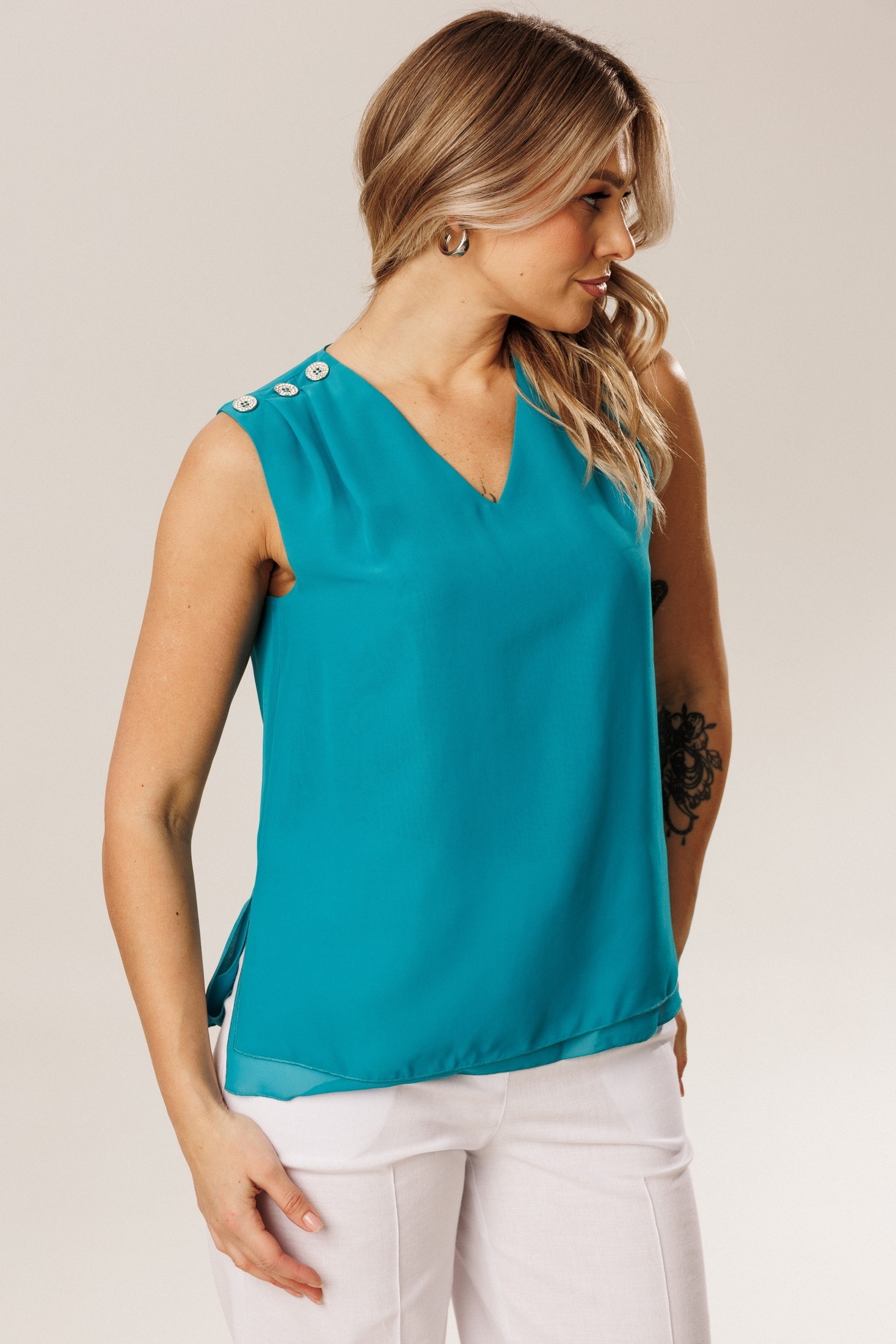 Блузка 1736 бирюзовый Faufilure — это воплощение легкости и стиля на каждый день. Коллекция бренда Faufilure предлагает изящную свободную модель из шифона, которая идеально подходит для весенне-летнего периода. Материал обеспечивает свободное дыхание кожи, сохраняя комфорт даже в самые жаркие дни. V-образный вырез горловины и декоративные пуговицы по линии плеча придают изделию оригинальность и шарм. Яркий бирюзовый цвет прекрасно сочетается с нейтральными оттенками и добавляет свежести в любой образ. Эта блузка станет универсальным решением как для офиса, так и для прогулок с друзьями, обеспечивая стильный вид в любом случае.