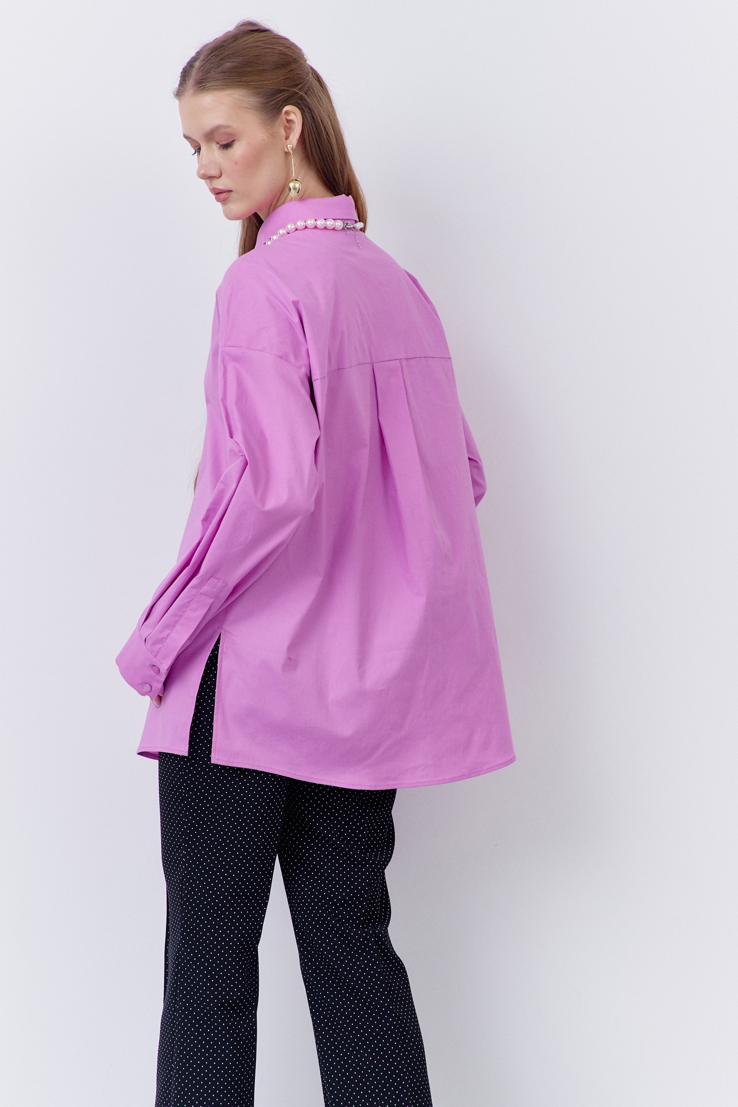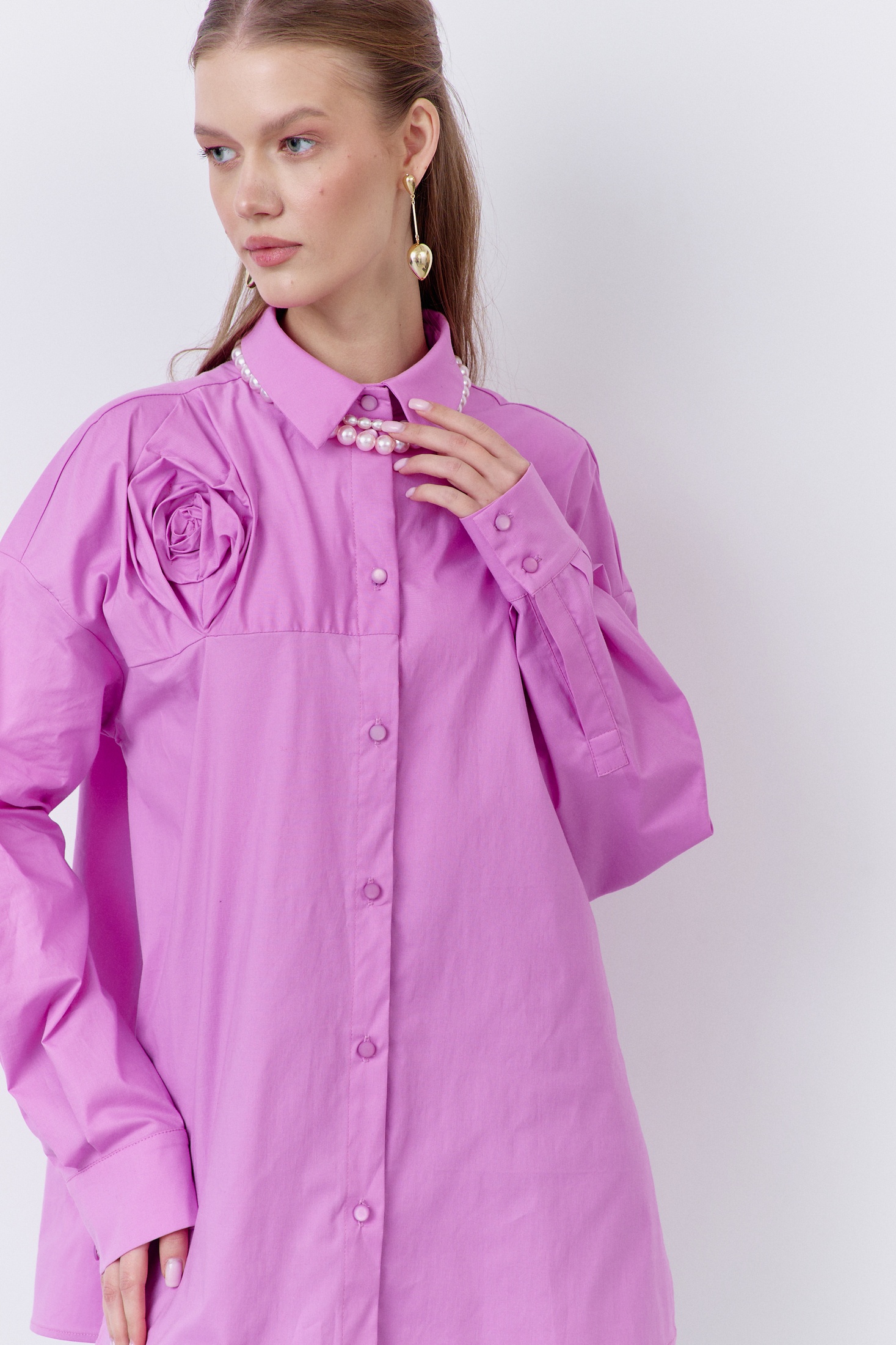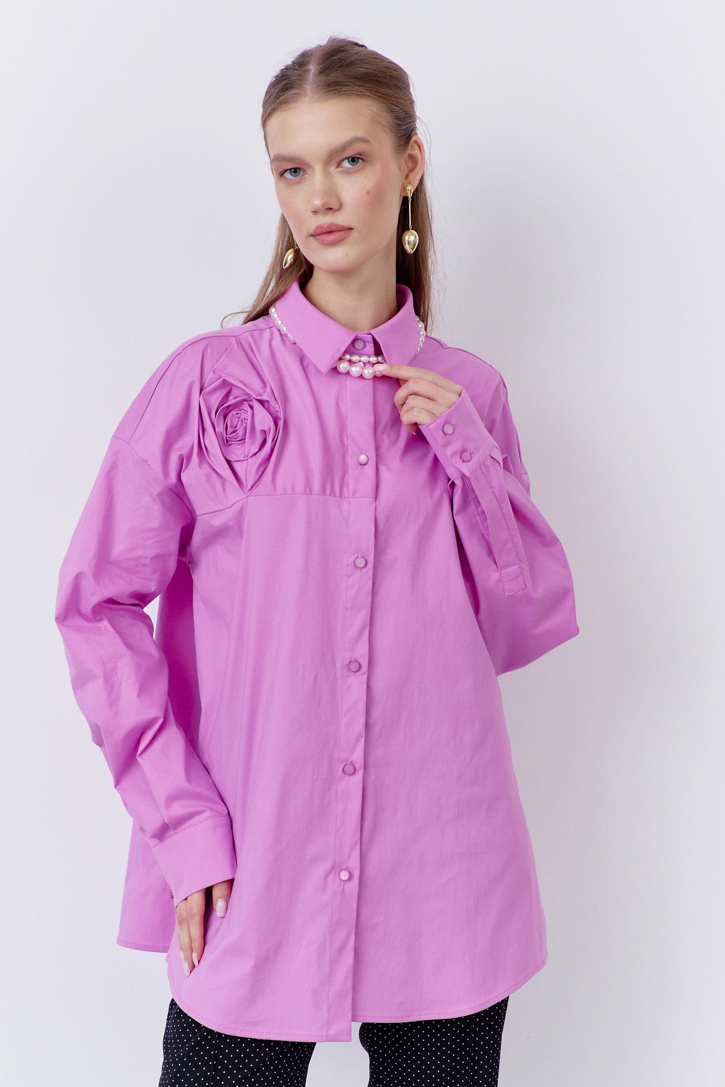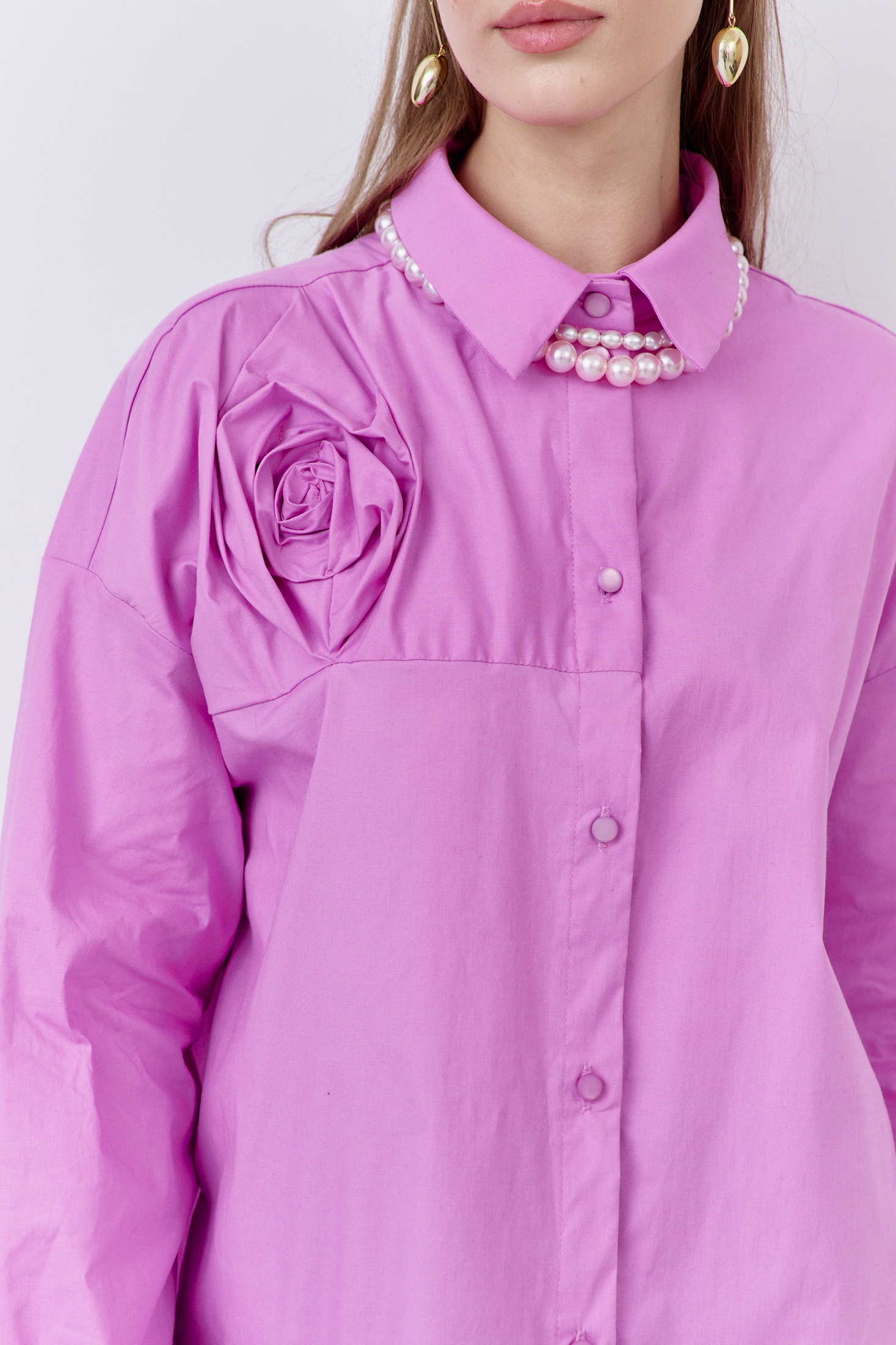 Блузка 2071 сирень FLAIM — это вещь, которая добавит шарма в ваш гардероб. Коллекция бренда FLAIM предлагает свободный фасон, выполненный из 100% хлопка, что обеспечивает комфорт и воздухопроницаемость. Особенностью модели является декоративная кокетка на передней части и отрезная кокетка на спинке. Центральная застежка на петли и пуговицы добавляет удобства, а манжеты на длинных рукавах подчеркивают стиль. Цвет сирени делает блузку отличным решением для весенне-летнего сезона. Подходит для повседневного и офисного стиля.