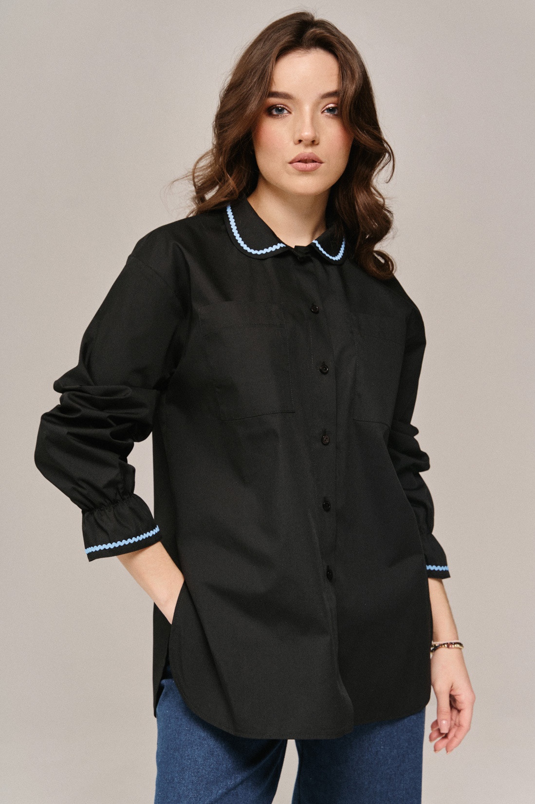 Блузка 2670 JRSy от бренда JRSy идеально подойдет для создания стильного повседневного образа. Коллекция бренда сочетает в себе современный дизайн и комфорт. Блузка выполнена из качественного материала с преобладанием хлопка, что обеспечивает воздухопроницаемость и удобство носки. Прямой силуэт и симметричные накладные карманы создают современный облик, а фигурный низ добавляет оригинальности. Декор из тесьмы на рукавах и воротнике подчеркивает молодежный стиль, а рубашечные рукава с оборкой придают легкость и игривость. Черный цвет делает изделие универсальным, идеально подходящим для любых ситуаций. Блузка станет отличным выбором для весенне-летнего сезона и обеспечит комфорт в любой день.