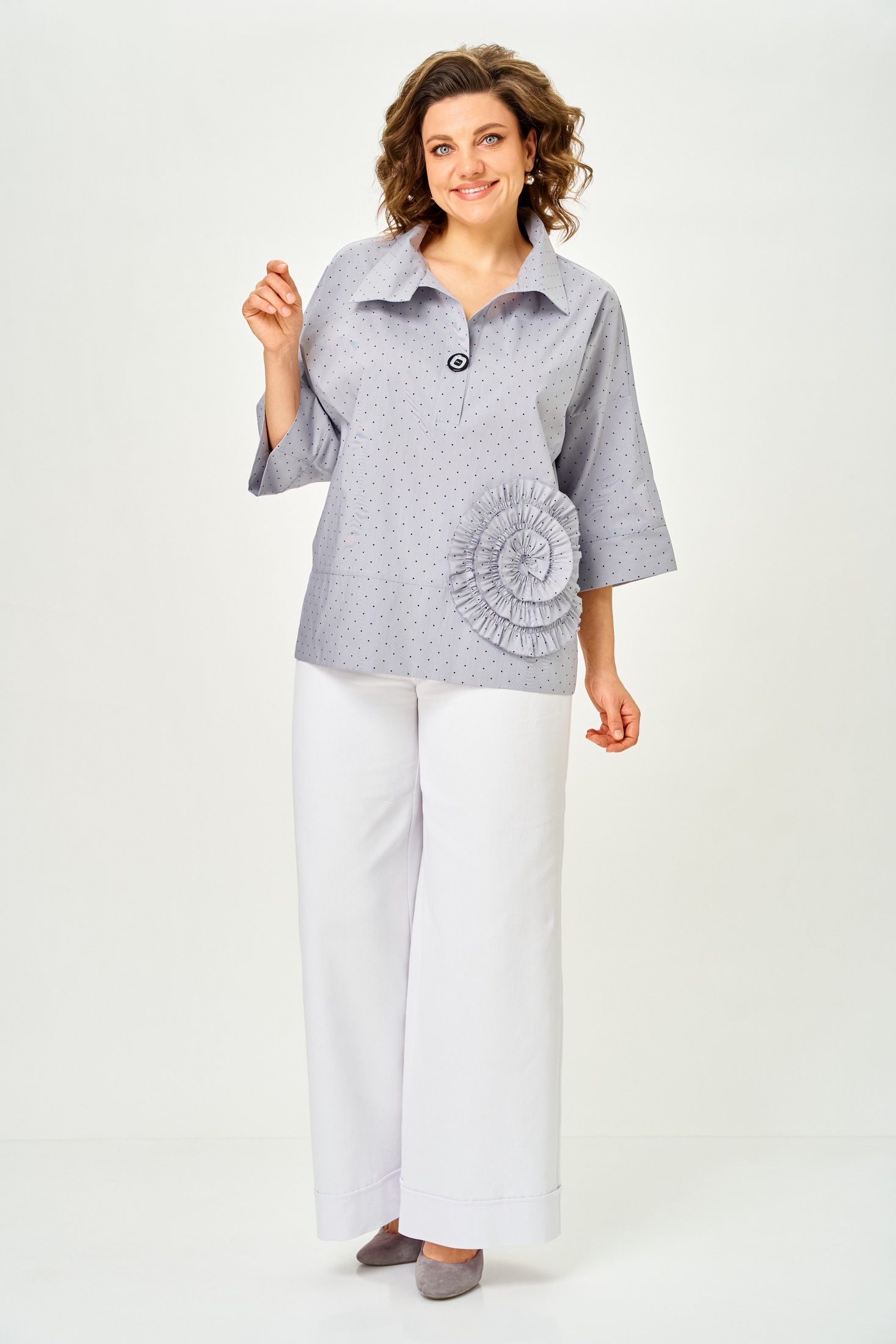 Блузка 786-1 ниагара Michel Chic — это стильная модель, созданная из высококачественного хлопка в сочетании с нейлоном, что обеспечивает максимальный комфорт и воздухопроницаемость. Коллекция бренда Michel Chic предлагает современный дизайн для повседневных и офисных образов. Свободный силуэт и укороченные рукава 3/4 дополняют легкость и стильность блузки. Оригинальный крой спинки с запахом привлекает внимание, создавая плавные линии. Графичный принт в «Стальной горох» добавляет особую текстуру, а изящная отделка делает модель уникальной. Идеально для весенне-летнего сезона, эта блузка прекрасно подходит для сочетания с юбками и брюками. Длина изделия по спинке составляет 74 см, что позволяет выглядеть стильно и комфортно весь день.