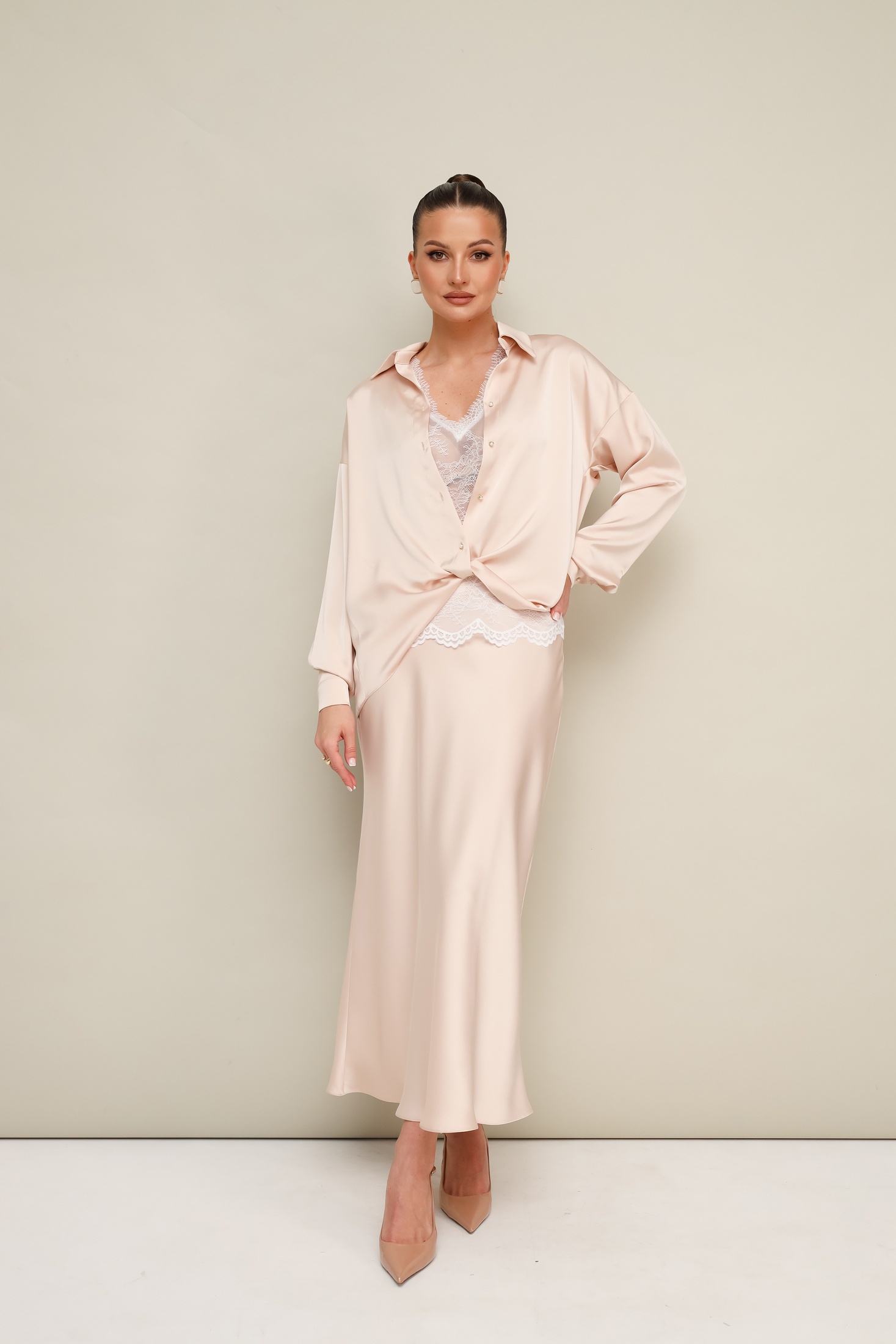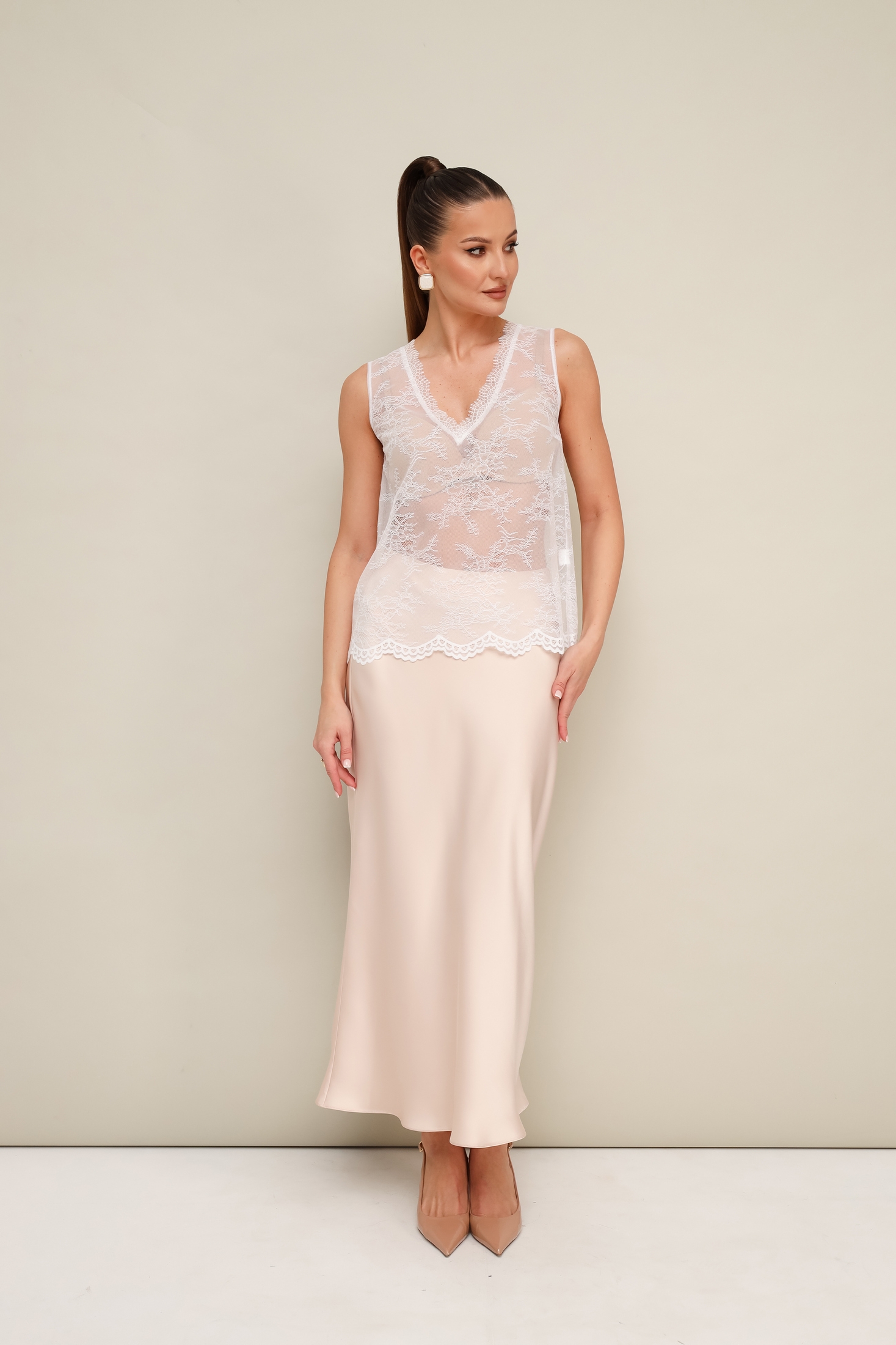 Блузка 11-443-1 Pur Pur привлечет внимание к вашему гардеробу. Изготовленная из полиэстера, она предлагает утонченный вид и плавность. Коллекция бренда Pur Pur включает в себя этот стильный дизайн с прямым кроем, рубашечным воротником на отрезной стойке и центральной застежкой на пуговицы. Декоративный перекрут внизу и V-образный вырез создает изысканный образ. Блузка дополнена кружевным топом.Топ прямого силуэта, выполнен из изысканного французского кружева. V-образный вырез горловины обработан кружевной отделкой. Идеальна для любого сезона, особенно весны и лета. Цвет блузки нейтральный, что делает ее универсальной для разных стилей и настроений.