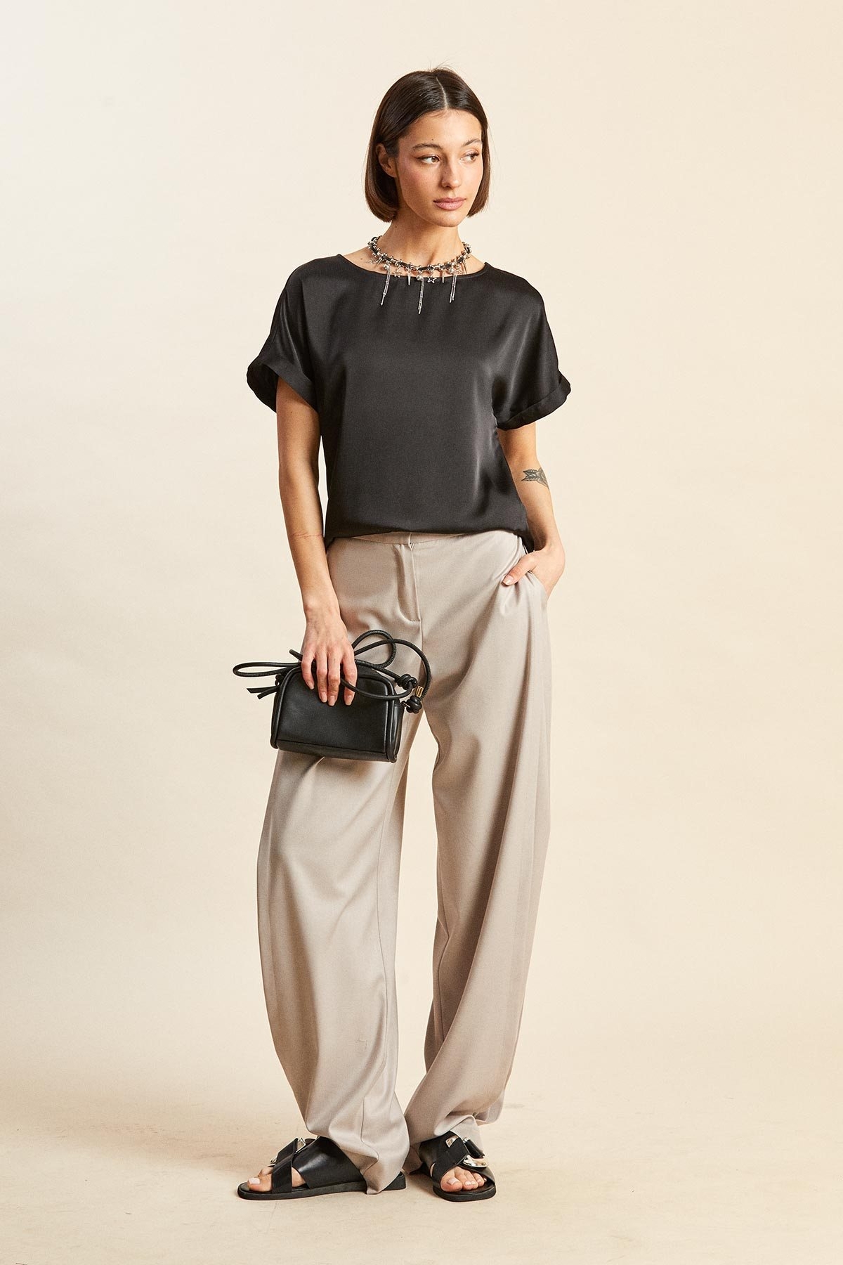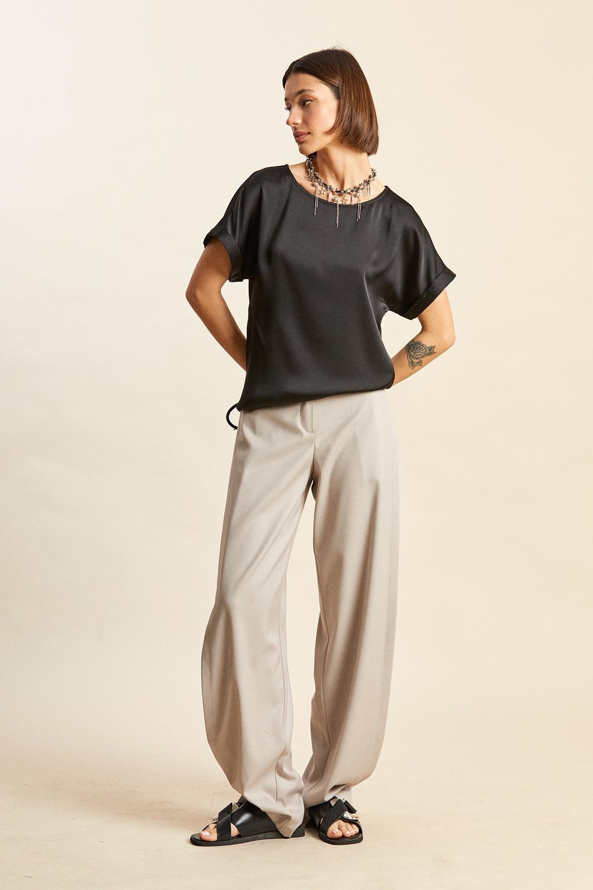 Блузка 2476-1 черный Rivoli привнесет в ваш гардероб стиль и комфорт. Коллекция бренда Rivoli создана для тех, кто ценит актуальные тренды и удобство. Эта блузка из 100% полиэстера удивляет мягкостью материала и простотой ухода, оставаясь стойкой к износу. Свободный силуэт и спущенное плечо создают расслабленный образ, а узкие манжеты с отворотами добавляют элегантности. Вырез горловины широкого округлого формата обеспечивает дополнительное удобство в носке. Легкие разрезы в боковых швах придают изделию динамичность, помогая создать образ, который подойдет как для офисного стиля, так и для повседневных прогулок. Спинка немного длиннее переда, что добавляет слой интереса в эту универсальную модель. Идеальна для сезона весна и осень, ее черный цвет отлично комбинируется с любой палитрой вашего гардероба.
