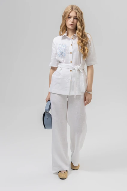 Блузка РТ0188-ЛЕ4 Romgil — это стильная женская блузка, идеально подходящая для теплого сезона. Коллекция бренда Romgil создала изысканный дизайн из 100% натурального льна, что делает ее комфортной и дышащей. Свободный крой, короткие рукава и пояс позволят вам подчеркнуть талию и создать образ, который подходит как для повседневных прогулок, так и для офисных встреч. Блузка выполнена в чисто белом цвете, что делает ее универсальной для комбинирования с различными элементами гардероба. Этот изделие отлично сочетается с брюками, юбками и шортами, добавляя вашему стилю легкости и свежести.