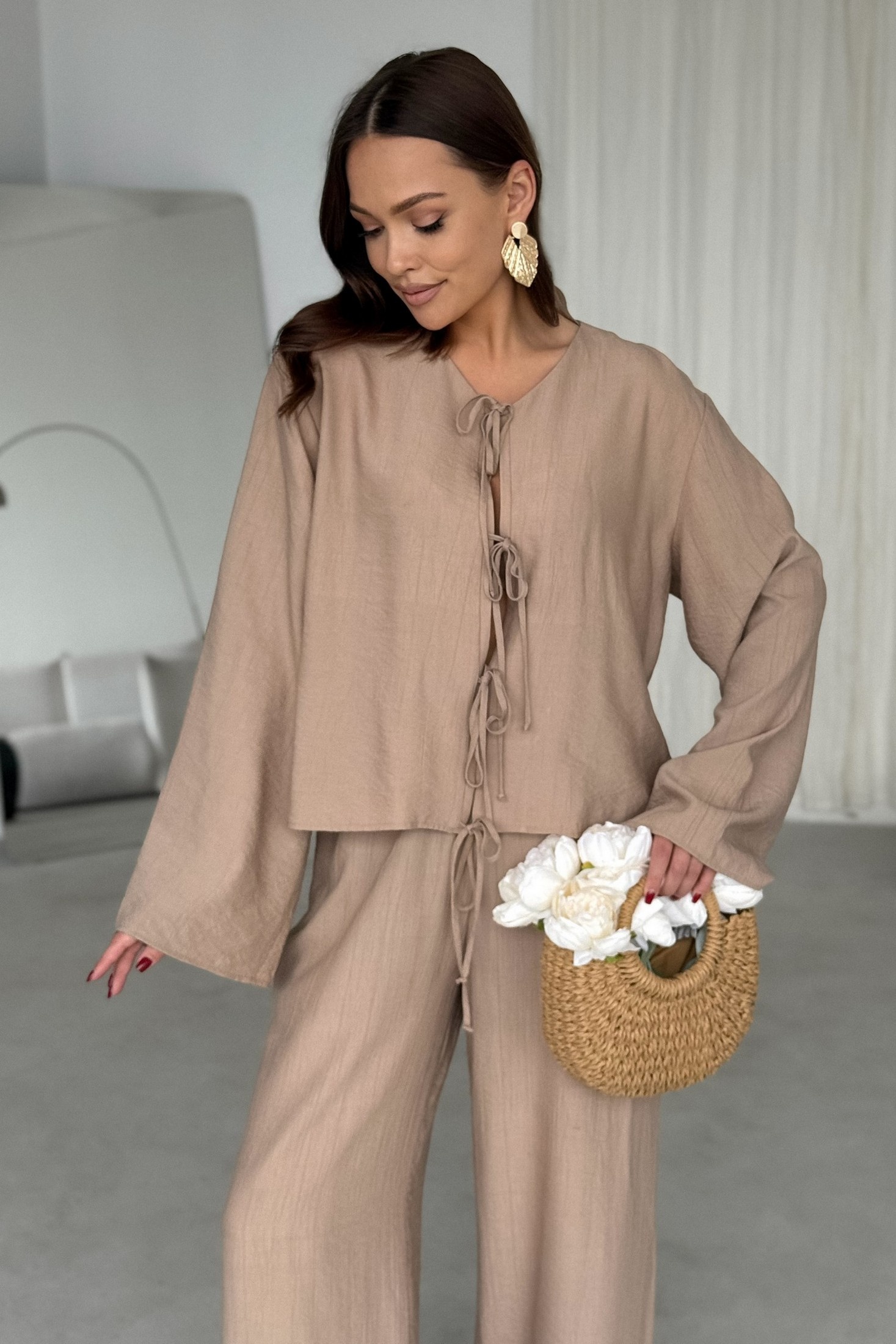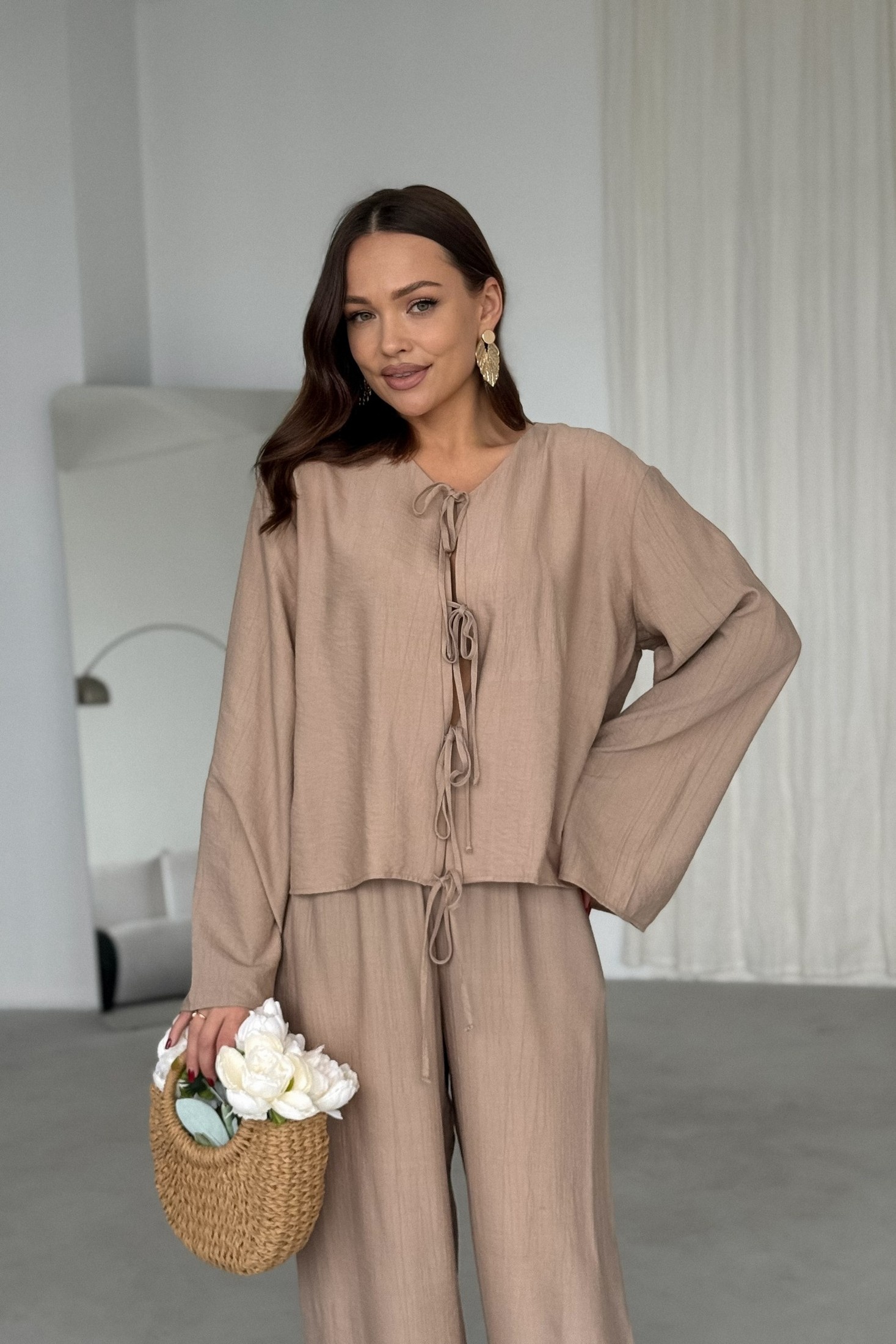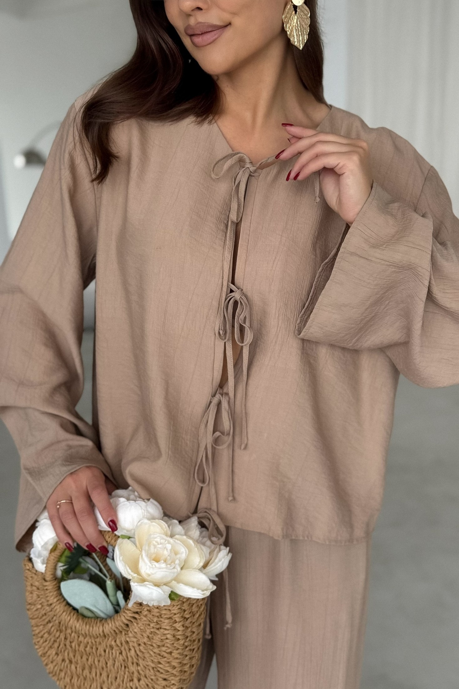 Блузка 198 бежевый T.N.D — воплощение лёгкости и комфорта. Коллекция бренда T.N.D предлагает эту летнюю модель, выполненную из вискозной ткани с эффектом мятости. Свободный силуэт обеспечивает комфорт и подходит для любых типов фигуры, а длинные втачные рукава дополнят любой образ. Округлый вырез горловины без воротника и центральная застежка на завязках придают блузке особую изюминку. Эту блузку можно комбинировать как с классическими брюками для офисного стиля, так и с джинсами или шортами для повседневных образов. Нежный бежевый цвет подчеркнет природную красоту и станет идеальным дополнением летнего гардероба.