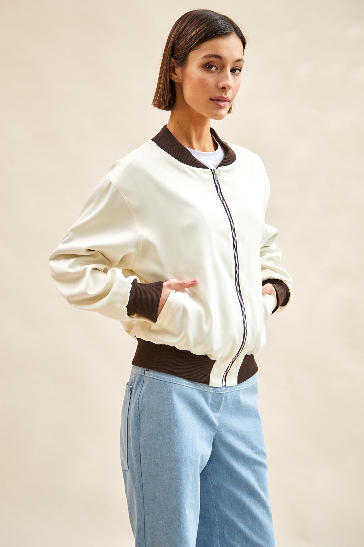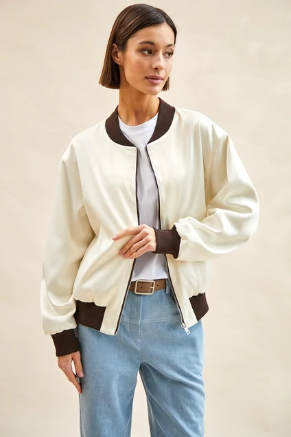 Бомбер 8097 бежевый + коричневый Rivoli