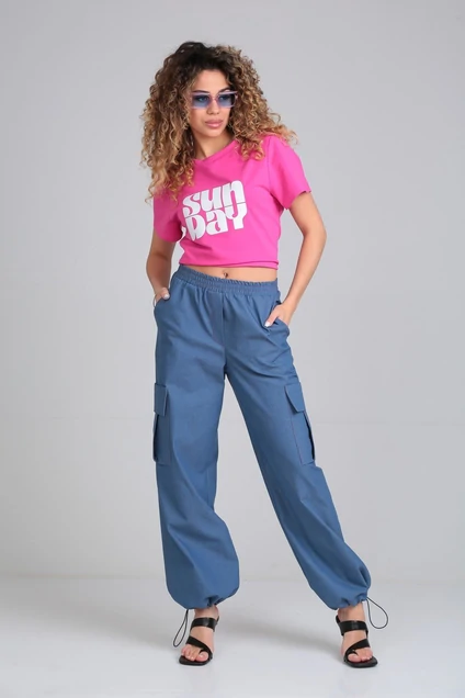 Брюки "карго" на притачном поясе с резинкой, с карманами в боковых швах и накладными карманами со складками и отворотами , на правой задней половинке выполнен прорезной карман с "листочкой", по низу брюк выполнены кулисы с резинками и фиксаторами. измерения в готовом виде