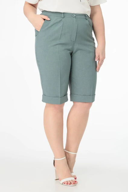 Думаете, что одеть в дорогу или на море жарким, летним днем? Шорты длиной до колен с заутюженными манжетами по низу – будут незаменимы. На задней половинке брюк листочка. С переде карман с боковой частью, по центру гульфик. Пояс с шлевками и резинкой по бокам и застёжкой на пуговицу. ДЛИНА ИЗДЕЛИЯ (см): 63