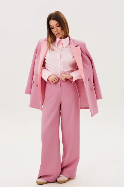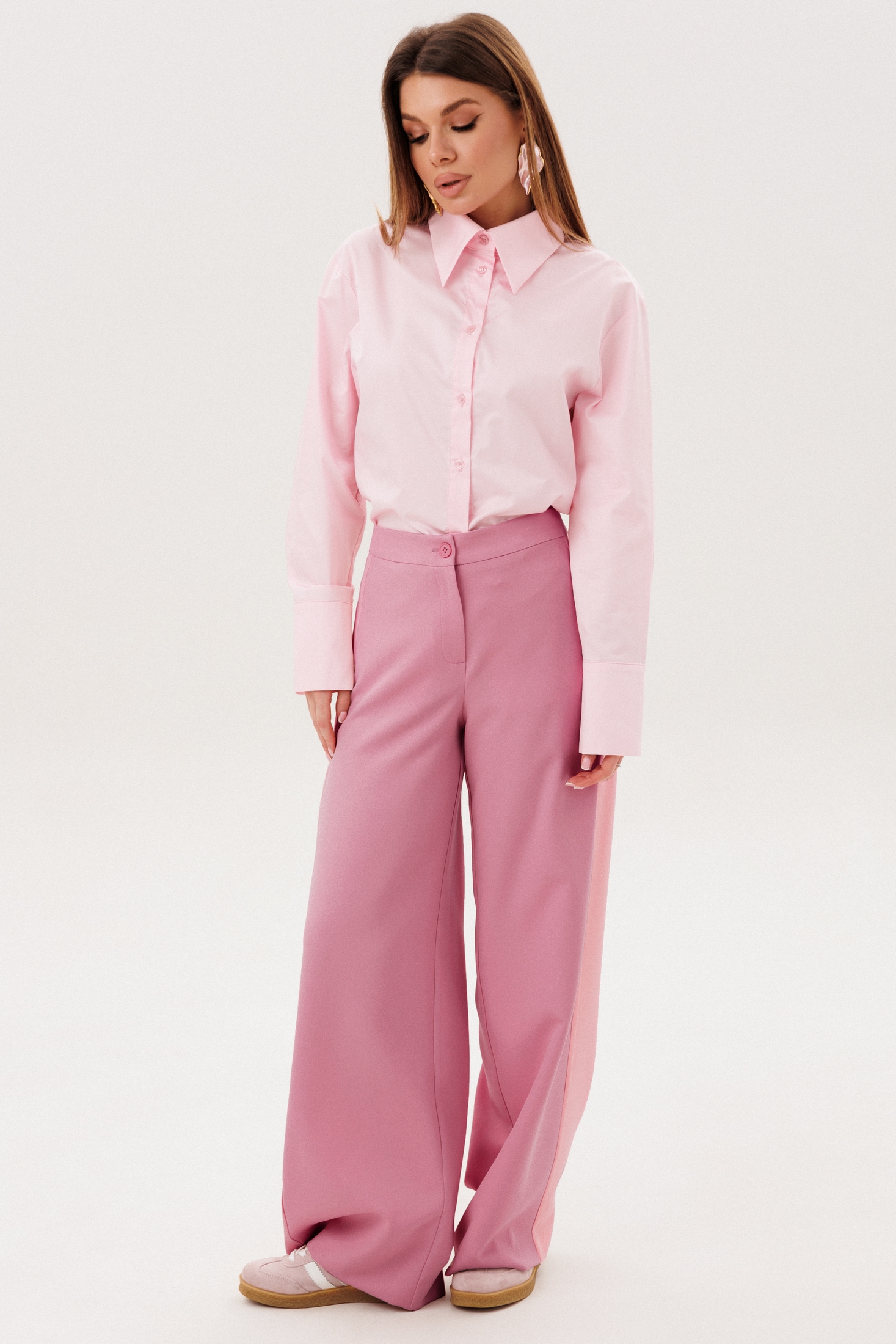Брюки прямого кроя с высокой посадкой на притачном поясе, застежка на тесьму-молнию гарантирует удобство при носке. В боковых швах брюк вставка (ЛАМПАСЫ)