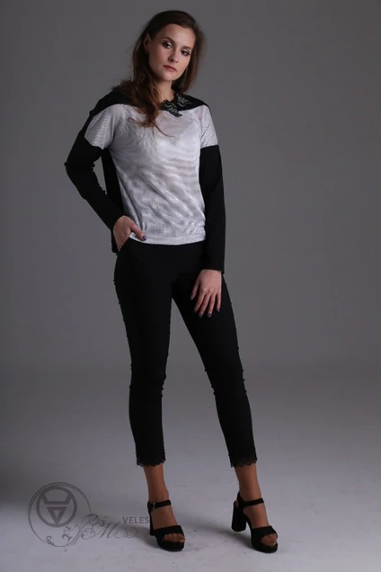 Брюки семь-восьмых с кружевом по низу. Уровень талии выше среднего. Длина 164-92см, 170-97см.