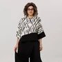 При съемке в образе мы использовали наши модели, такие как блуза женская 1288.1 из такой же ткани и жакет-кимоно 773 бьянко опако.