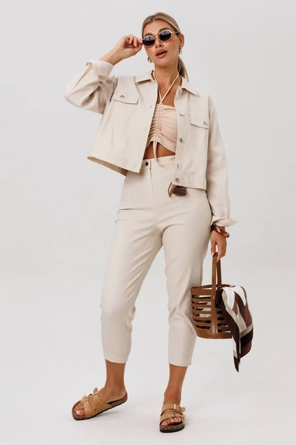 Брюки 1565-2 мальдивский песок Anelli от коллекции бренда Anelli. Эти брюки из 95% хлопка и 5% эластана предлагаются в уникальном цвете «мальдивский песок». Высокая посадка и длина до середины щиколотки обеспечивают комфорт и стильный вид. Фасон мягко заужается к низу, что создает современный силуэт. Спереди предусмотрены удобные карманы, застежка-гульфик на молнии и пояс с кнопкой для дополнительного комфорта. Резинка на поясе по спинке гарантирует идеальную посадку. Спинка украшена фигурной кокеткой и настрочными карманами. Идеально подходят для ежедневных и офисных образов и сезон Весна-Лето. Оптимальная длина изделия — 90 см для размера 44, 92 см для размеров 46 и 48.