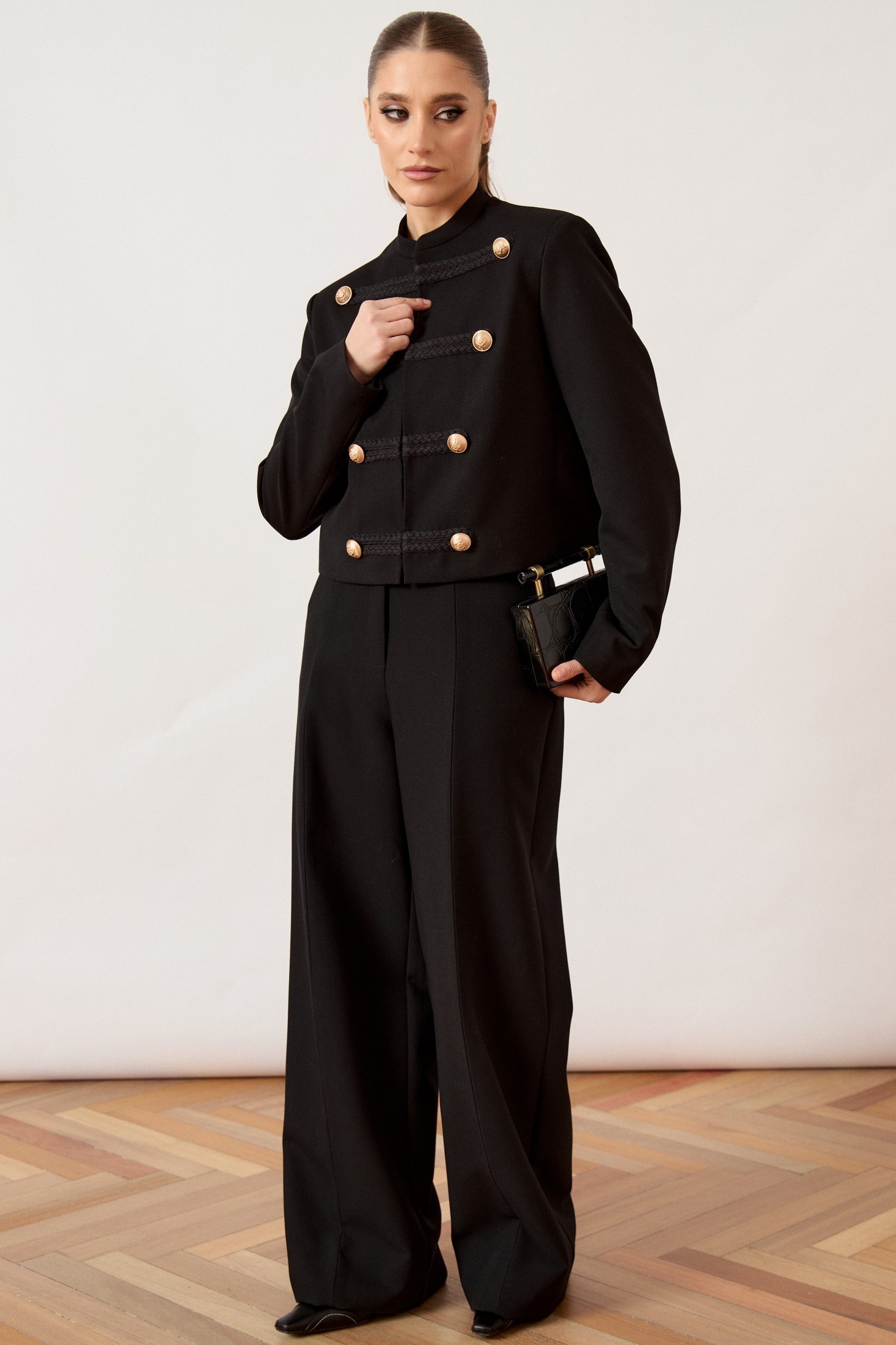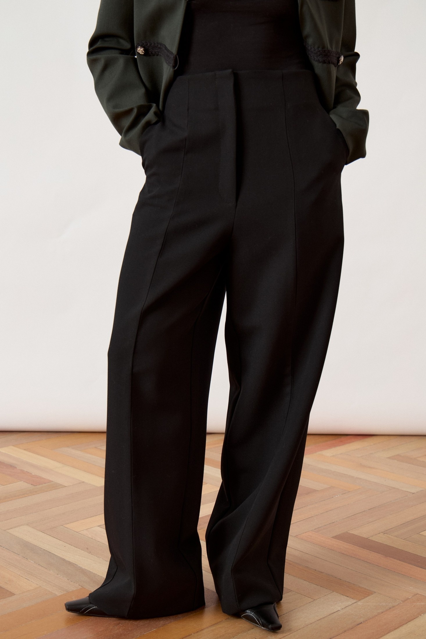 Брюки 3516 ATTIKA отразят ваш уникальный стиль благодаря сочетанию костюмной ткани и свободного силуэта. Коллекция бренда ATTIKA предлагает модель с высокой посадкой, притачным поясом и шлевками, что добавляет завершенность образу. Полиэстер и вискоза в составе обеспечивают комфорт и стойкость изделия, а добавление эластана гарантирует свободу движений. Брюки выполнены с центральной застежкой на молнию и пуговицу, глубокими защипами и стрелками спереди, придающими элегантность. Подходят для офиса или вечерних выходов в осеннем сезоне. Боковые карманы добавляют практичности, а черный цвет делает эти брюки универсальным элементом гардероба.