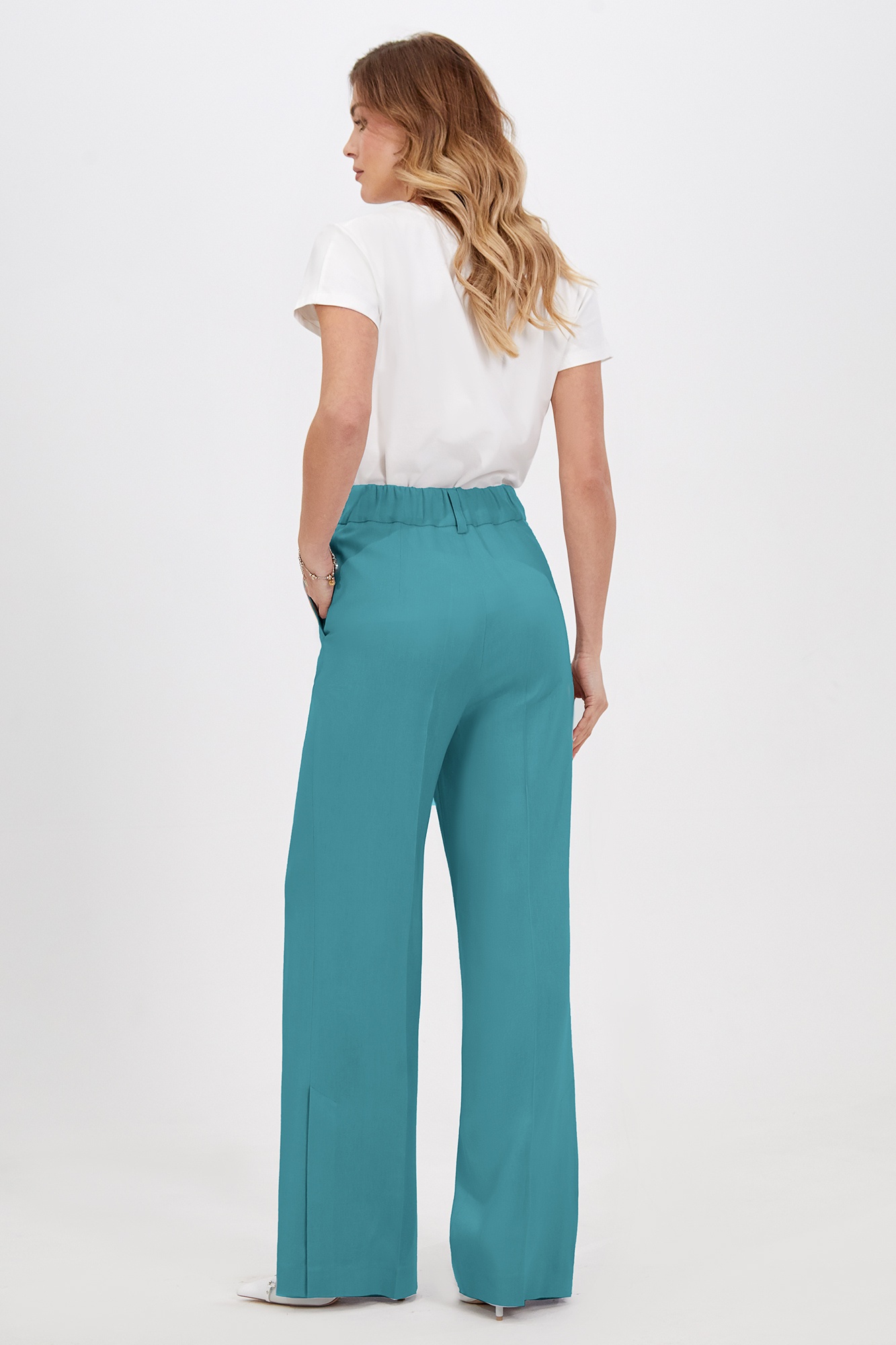 Брюки 5040 бирюза Bazalini – идеальный выбор для создания стильного гардероба. Коллекция бренда Bazalini воплощает утонченные формы и практичность. Эти широкие брюки выполнены из мягкого состава с 49% вискозы, 28% льна и 23% хлопка, обеспечивая комфорт и долговечность. Завышенная талия и эластичная тесьма на спинке подчеркивают фигуру, а застежка на молнию и пуговицы добавляют функциональности. Косые боковые карманы придают изделию функциональность. Бирюзовый цвет делает брюки ярким акцентом в повседневных и офисных ансамблях. Универсальный стиль подходит для любого сезона, создавая удобное и современное ощущение.