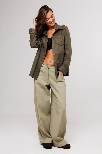 Брюки-джинсы немного заужены к низу. На притачном поясе со шлёвками, застежкой-гульфик. Пояс застегивается на петлю-пуговицу. По переду карманы и рельефы. По спинке кокетка, накладные карманы и рельефы.