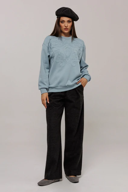 Элегантные брюки прямого силуэта из качественной пальтовой ткани тёмно-серого цвета. Модель выполнена на притачном поясе с шлевками для ремня, обеспечивая классический вид. Стильный элемент - застежка-гульфик с кнопкой и крючком, скрытым под петлей-пуговицей, добавляет утончённости. Оформление передней части с аккуратной складкой и заутюженной стрелкой от складки делает фигуру более стройной. Практичные карманы в боковых швах с наклонным входом удобны для использования. На спинке брюк предусмотрены вытачки, подчеркивающие крой и заутюженные стрелки, продолжающие линию фигуры по всей длине. Эти изысканные брюки будут стильным дополнением к деловому или повседневному гардеробу.