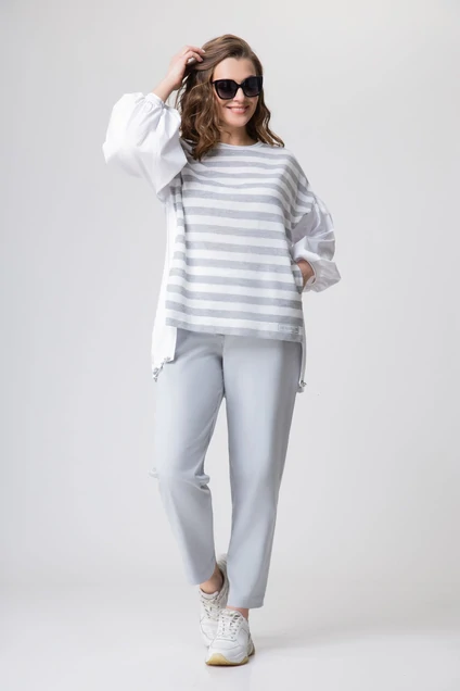 Брюки женские на притачном поясе, джогеры зауженные к низу, выполнены из хлопкового джинса. Пояс на широкой резинке со шнуром и наконечниками, по центру передних половинок имитация застёжки и карманы, по задним половинкам кокетка и накладные карманы