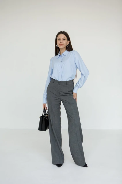 Шикарные женские брюки палаццо с шерстью - олтичный вариант для холодлной осени или зимы. Отличная посдака брюк, классический цвет, к которому легко подобрать верх: например наша женская блузка под запонки 5072.